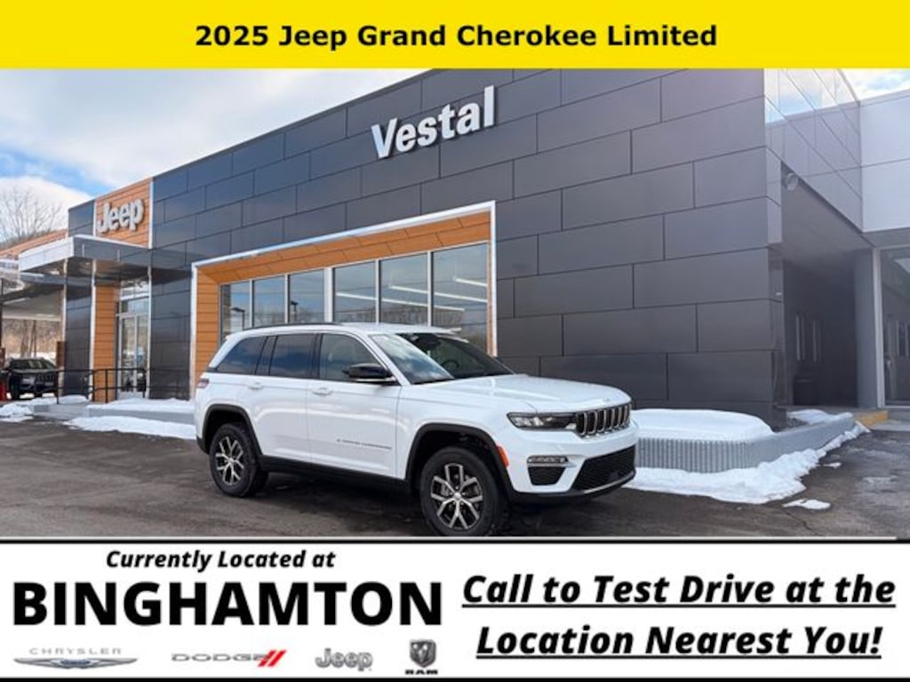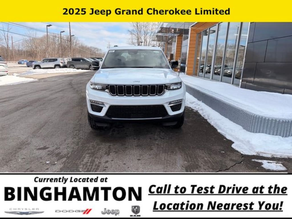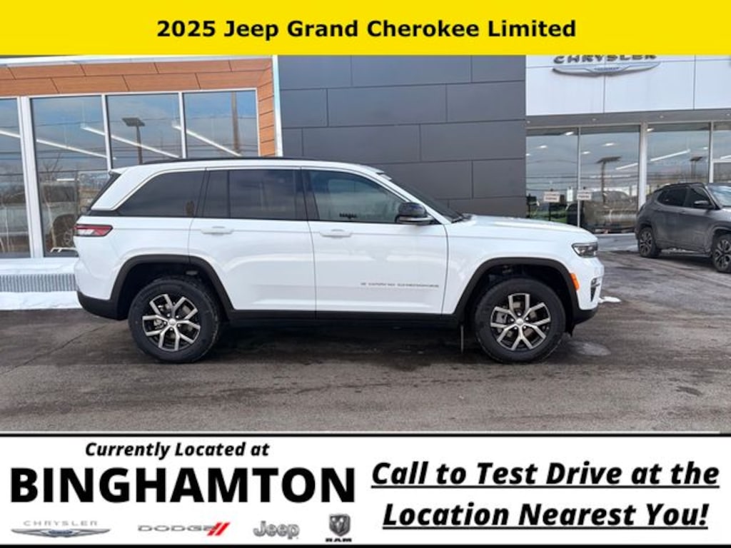 Bright White Clearcoat 2025 Jeep Grand Cherokee Limited 4WD 8-Speed Automatic 3.6L V6 24V VVT Save Time at the Dealership by Customizing your Deal Online!, 4WD, 4-Wheel Disc Brakes, 6 Speakers, ABS brakes, Active Noise Control System, Air Conditioning, Alloy wheels, AM/FM radio: SiriusXM with 360L, Anti-whiplash front head restraints, Audio memory, Auto High-beam Headlights, Automatic temperature control, Brake assist, Bumpers: body-color, Capri Leatherette Seats, Compass, Delay-off headlights, Driver door bin, Driver vanity mirror, Dual front impact airbags, Dual front side impact airbags, Electronic Stability Control, Emergency communication system, Four wheel independent suspension, Front anti-roll bar, Front Bucket Seats, Front Center Armrest w/Storage, Front dual zone A/C, Front fog lights, Front License Plate Bracket, Front reading lights, Fully automatic headlights, Garage door transmitter, Heated door mirrors, Heated front seats, Heated rear seats, Heated steering wheel, Illuminated entry, Knee airbag, Low tire pressure warning, Memory seat, Model Year Tracking, Navigation System, Normal Duty Suspension, Occupant sensing airbag, Outside temperature display, Overhead airbag, Overhead console, Panic alarm, ParkView Rear Back-Up Camera, Passenger door bin, Passenger vanity mirror, Power door mirrors, Power driver seat, Power Liftgate, Power passenger seat, Power steering, Power windows, Quick Order Package 22E, Radio data system, Radio: Uconnect 5 Nav with 10.1" Display, Rear anti-roll bar, Rear reading lights, Rear window defroster, Rear window wiper, Remote keyless entry, Security system, Speed control, Speed-Sensitive Wipers, Split folding rear seat, Spoiler, Steering wheel mounted audio controls, Tachometer, Telescoping steering wheel, Tilt steering wheel, Traction control, Trip computer, Turn signal indicator mirrors, Variably intermittent wipers, Voltmeter, Wheels: 18" x 8" Polished/Painted Aluminum, 4WD.