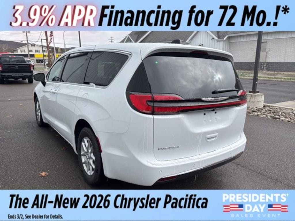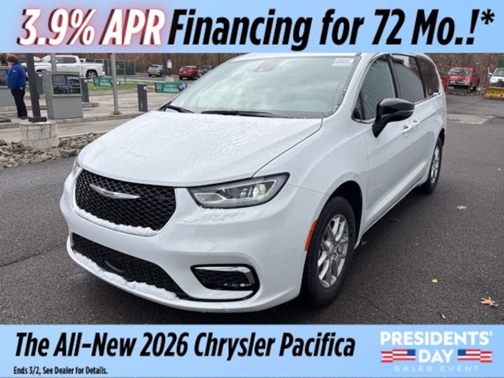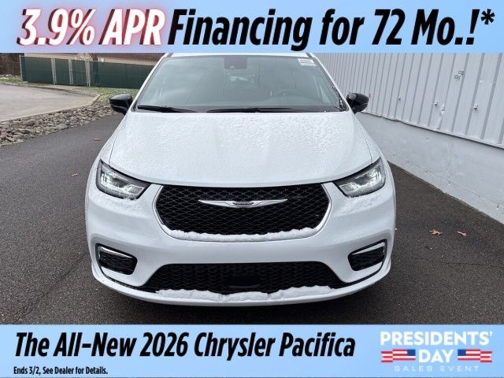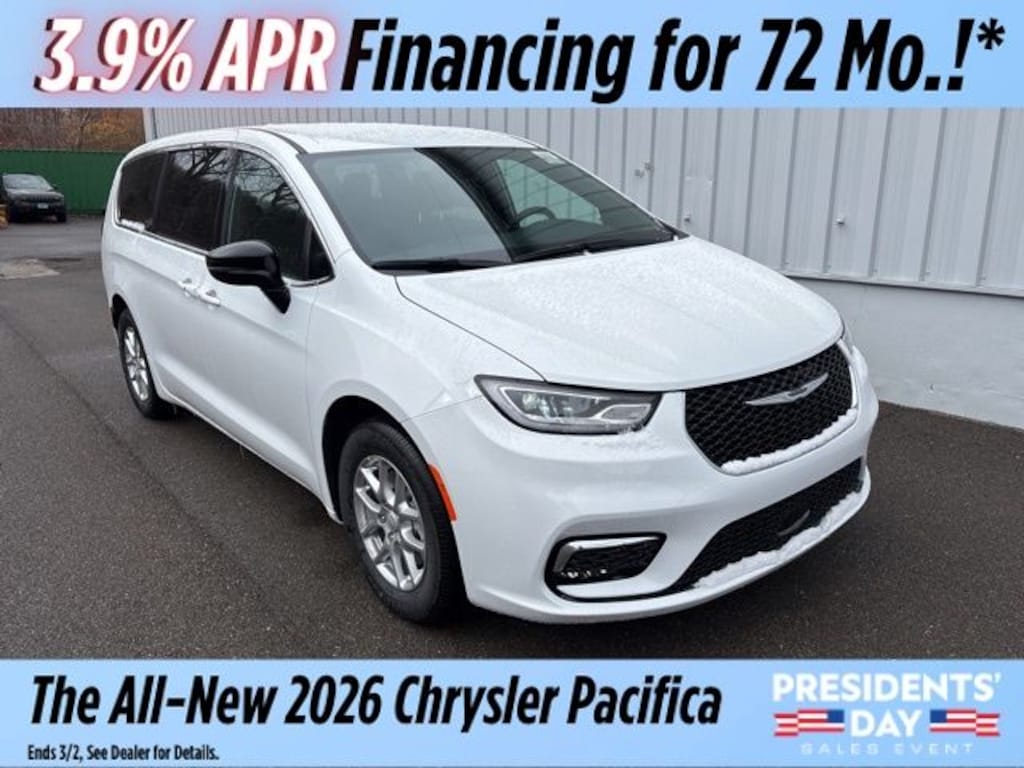 Bright White Clearcoat 2026 Chrysler Pacifica Select FWD 9-Speed 948TE Automatic 3.6L V6 24V VVT Save Time at the Dealership by Customizing your Deal Online!, 10.1" Touchscreen Display, 17" x 7.0" Aluminum Wheels, 3.25 Axle Ratio, 3rd row seats: split-bench, 4-Wheel Disc Brakes, 4G LTE Wi-Fi Hot Spot, 6 Speakers, ABS brakes, Air Conditioning, Alloy wheels, AM/FM radio: SiriusXM, Apple CarPlay, Apple CarPlay/Android Auto, Auto-dimming Rear-View mirror, Automatic temperature control, Black Seats, Brake assist, Bumpers: body-color, Caprice Leatherette Bucket Seats, Compass, Connectivity - US/Canada, Delay-off headlights, Disassociated Touchscreen Display, Driver door bin, Driver vanity mirror, Driver's Seat Mounted Armrest, Dual front impact airbags, Dual front side impact airbags, Electronic Stability Control, Emergency communication system: Chrysler Connect, For Details, Visit DriveUconnect.com, Four wheel independent suspension, Front anti-roll bar, Front Bucket Seats, Front dual zone A/C, Front fog lights, Front reading lights, Fully automatic headlights, Garage door transmitter, Google Android Auto, GPS Antenna Input, Heated door mirrors, Heated front seats, Heated steering wheel, Illuminated entry, Integrated Active Noise Cancellation, Integrated Center Stack Radio, Knee airbag, Low tire pressure warning, Memory seat, Occupant sensing airbag, Outside temperature display, Overhead airbag, Overhead console, Panic alarm, ParkView Rear Back-Up Camera, Passenger door bin, Passenger seat mounted armrest, Passenger vanity mirror, Power door mirrors, Power driver seat, Power Liftgate, Power steering, Power windows, Quick Order Package 27L, Radio data system, Radio: Uconnect 5 with 10.1" Display, Rain sensing wipers, Rear air conditioning, Rear reading lights, Rear window defroster, Rear window wiper, Reclining 3rd row seat, Remote keyless entry, Security system, Speed control, Split folding rear seat, Spoiler, Steering wheel mounted audio controls, Tachometer, Telescoping steering wheel, Tilt steering wheel, Touring Suspension, Traction control, Trip computer, Turn signal indicator mirrors, USB Host Flip, Variably intermittent wipers, Voltmeter.