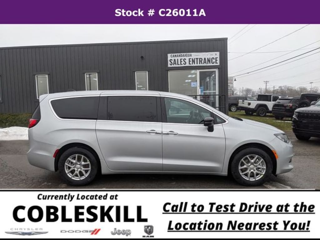 Silver Mist Clearcoat 2026 Chrysler Voyager LX FWD 9-Speed 948TE Automatic 3.6L V6 24V VVT Save Time at the Dealership by Customizing your Deal Online!, 17" x 7" Aluminum Wheels, 3.25 Axle Ratio, 3rd row seats: split-bench, 4-Wheel Disc Brakes, 6 Speakers, ABS brakes, Air Conditioning, Alloy wheels, AM/FM radio: SiriusXM, Apple CarPlay/Android Auto, Automatic temperature control, Black Seats, Brake assist, Bumpers: body-color, Caprice Leatherette Bucket Seats, Compass, Delay-off headlights, Driver door bin, Driver vanity mirror, Driver's Seat Mounted Armrest, Dual front impact airbags, Dual front side impact airbags, Electronic Stability Control, Emergency communication system: Chrysler Connect, Four wheel independent suspension, Front anti-roll bar, Front Bucket Seats, Front dual zone A/C, Front reading lights, Fully automatic headlights, Heated door mirrors, Heated front seats, Heated steering wheel, Illuminated entry, Knee airbag, Low tire pressure warning, Occupant sensing airbag, Outside temperature display, Overhead airbag, Overhead console, Panic alarm, ParkView Rear Back-Up Camera, Passenger door bin, Passenger seat mounted armrest, Passenger vanity mirror, Power door mirrors, Power driver seat, Power Liftgate, Power steering, Power windows, Quick Order Package 27E, Radio data system, Radio: Uconnect 5 with 10.1" Display, Rain sensing wipers, Rear air conditioning, Rear window defroster, Rear window wiper, Reclining 3rd row seat, Remote keyless entry, Security system, Speed control, Split folding rear seat, Spoiler, Steering wheel mounted audio controls, Tachometer, Telescoping steering wheel, Tilt steering wheel, Touring Suspension, Traction control, Trip computer, Turn signal indicator mirrors, Variably intermittent wipers, Voltmeter.