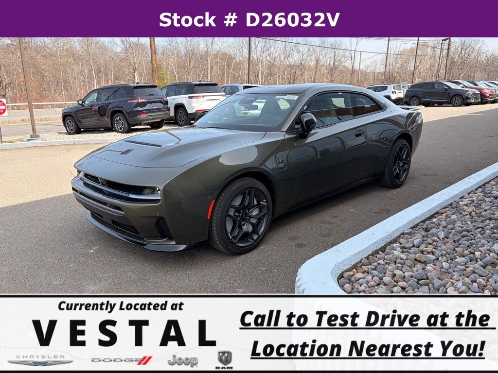 Green Machine 2026 Dodge Charger R/T Scat Pack AWD 8-Speed Automatic HO AWD, Black Artificial Leather, 10 Speakers, 2-Way Manual Adjust Front Head Restraints, 2-Way Power Driver Lumbar Adjust, 4-Wheel Disc Brakes, 4G LTE Wi-Fi Hot Spot, 8-Way Power Driver Seat Adjust, ABS brakes, Active Noise Control System, Air Conditioning, Alloy wheels, AM/FM radio: SiriusXM w/360L, Apple CarPlay/Android Auto, Auto-dimming Rear-View mirror, Automatic temperature control, Black Seats, Blacktop Package, Brake assist, Bumpers: body-color, Compass, Connectivity - US/Canada, Dark Exterior Badging, Delay-off headlights, Disassociated Touchscreen Display, Driver door bin, Driver vanity mirror, Dual front impact airbags, Dual front side impact airbags, Dual Rear Exhaust with Black Tips, Electronic Stability Control, Emergency communication system: Dodge Connect, Four wheel independent suspension, Front anti-roll bar, Front Bucket Seats, Front Center Armrest, Front dual zone A/C, Front License Plate Bracket, Front reading lights, Fully automatic headlights, Garage door transmitter, Heated door mirrors, Heated Exterior Mirrors, Heated Front Seats, Heated front seats, Heated steering wheel, Illuminated entry, Integrated Center Stack Radio, Knee airbag, Leather Shift Knob, Leatherette/Cloth Performance Seats, Low Back Bucket Seats, Low tire pressure warning, MyFlexCare Service Plan, Occupant sensing airbag, Outside temperature display, Overhead airbag, Overhead console, Panic alarm, ParkView Rear Back-Up Camera, Passenger door bin, Passenger vanity mirror, Power Adjust Mirrors, Power door mirrors, Power driver seat, Power steering, Power windows, Quick Order Package 22P Scat Pack, Radio data system, Radio: Uconnect 5 with 12.3" Display, Rear anti-roll bar, Rear reading lights, Rear seat center armrest, Rear window defroster, Remote keyless entry, Security system, Speed control, Split folding rear seat, Spoiler, Sport steering wheel, Steering wheel mounted audio controls, Tachometer, Telescoping steering wheel, Tilt steering wheel, Traction control, Trip computer, Two Tone Paint Group, Variably intermittent wipers, Wheels: 20" x 10" Aluminum, Wheels: 20" x 10" Dark Finish Aluminum, Wireless Apple CarPlay, Wireless Google Android Auto, AWD, Black Artificial Leather.