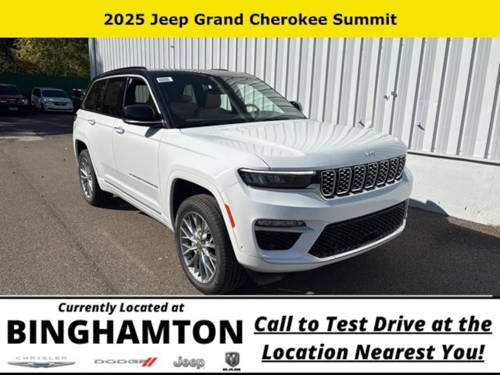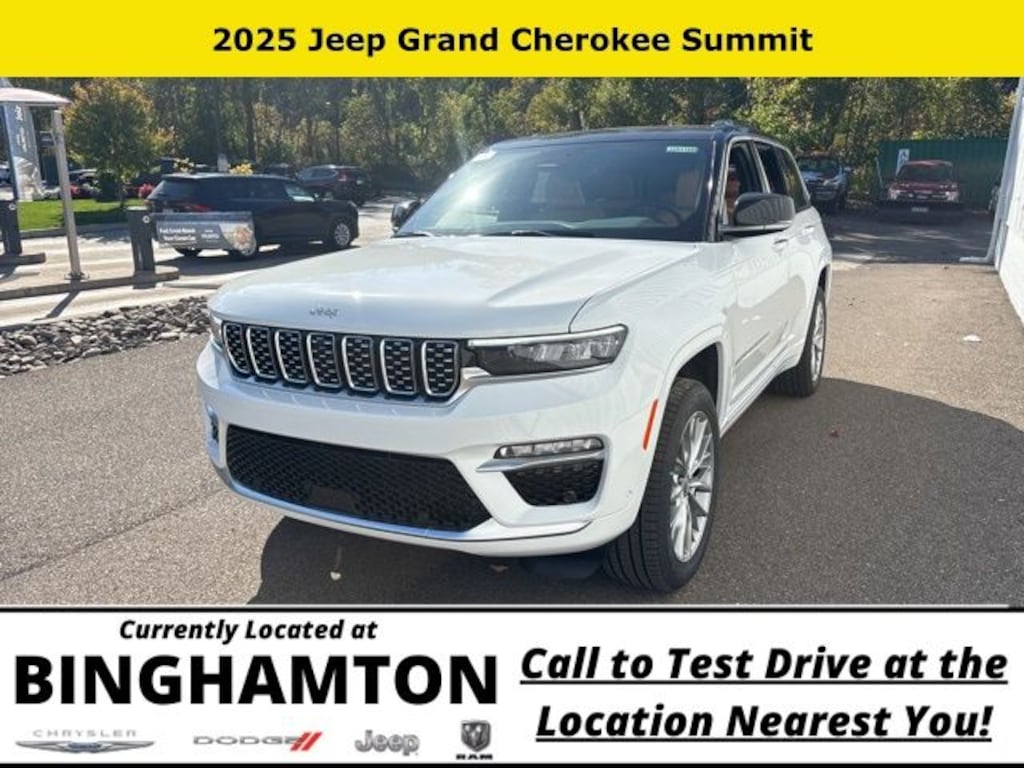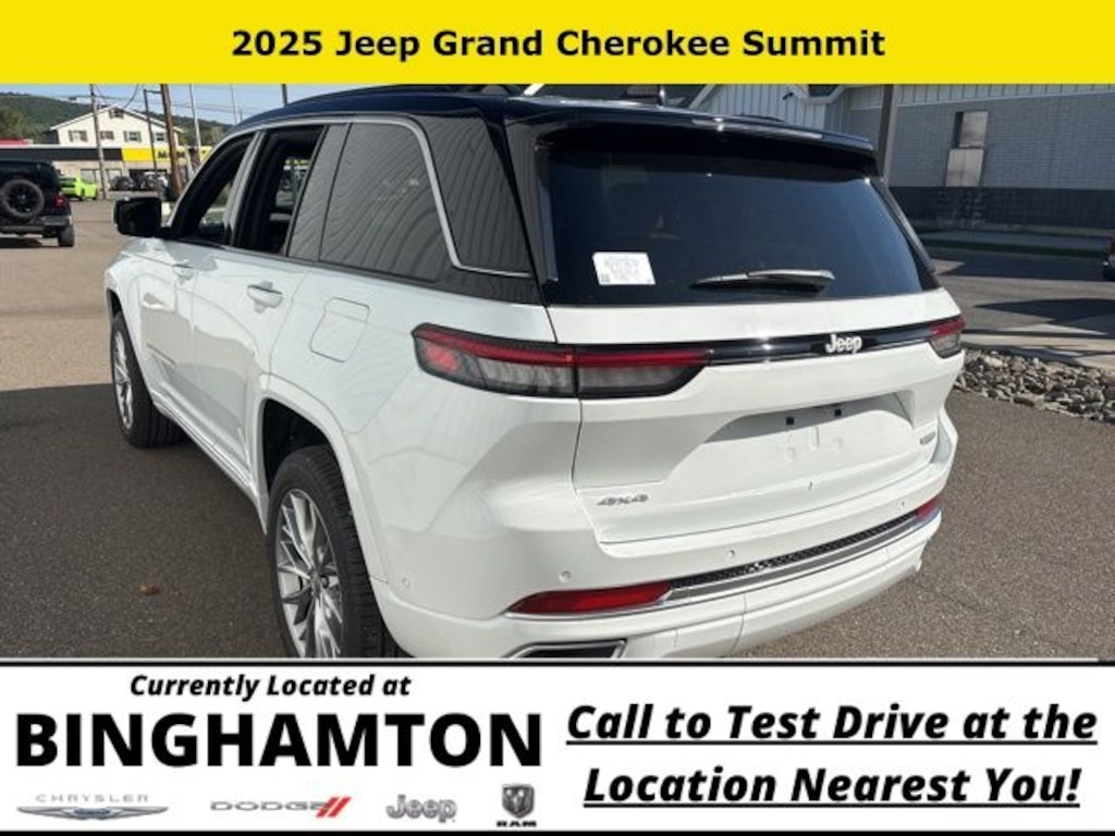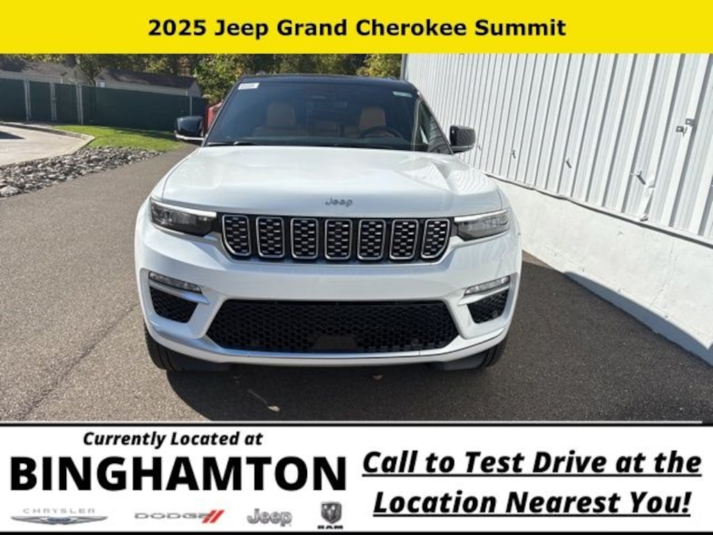 Bright White Clearcoat 2025 Jeep Grand Cherokee Summit 4WD 8-Speed Automatic 3.6L V6 24V VVT Save Time at the Dealership by Customizing your Deal Online!, 4WD, 10 Speakers, 4-Wheel Disc Brakes, ABS brakes, Active Noise Control System, Adaptive suspension, Air Conditioning, Alloy wheels, AM/FM radio: SiriusXM with 360L, Anti-whiplash front head restraints, Audio memory, Auto High-beam Headlights, Auto-dimming door mirrors, Auto-dimming Rear-View mirror, Auto-leveling suspension, Automatic temperature control, Auxiliary Battery, Brake assist, Bumpers: body-color, Compass, Delay-off headlights, Driver door bin, Driver vanity mirror, Dual front impact airbags, Dual front side impact airbags, Electronic Stability Control, Emergency communication system, Four wheel independent suspension, Front anti-roll bar, Front Bucket Seats, Front Center Armrest w/Storage, Front dual zone A/C, Front fog lights, Front License Plate Bracket, Front reading lights, Fully automatic headlights, Garage door transmitter, Genuine wood dashboard insert, Genuine wood door panel insert, Heated door mirrors, Heated front seats, Heated rear seats, Heated steering wheel, Illuminated entry, Knee airbag, Leather steering wheel, Low tire pressure warning, Memory seat, Model Year Tracking, Nappa Leather Seats, Navigation System, Normal Duty Suspension, Occupant sensing airbag, Outside temperature display, Overhead airbag, Overhead console, Panic alarm, Passenger door bin, Passenger vanity mirror, Power door mirrors, Power driver seat, Power Liftgate, Power moonroof, Power passenger seat, Power steering, Power windows, Quick Order Package 23S, Radio data system, Radio: Uconnect 5 Nav w/10.1" Display, Rain sensing wipers, Rear air conditioning, Rear anti-roll bar, Rear dual zone A/C, Rear reading lights, Rear seat center armrest, Rear window defroster, Rear window wiper, Remote keyless entry, Security system, Speed control, Speed-Sensitive Wipers, Split folding rear seat, Spoiler, Steering wheel memory, Steering wheel mounted audio controls, Tachometer, Telescoping steering wheel, Tilt steering wheel, Traction control, Trip computer, Turn signal indicator mirrors, Variably intermittent wipers, Ventilated front seats, Voltmeter, Wheels: 20" x 8.5" Fully Painted Aluminum Silver, 4WD.