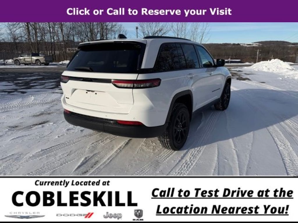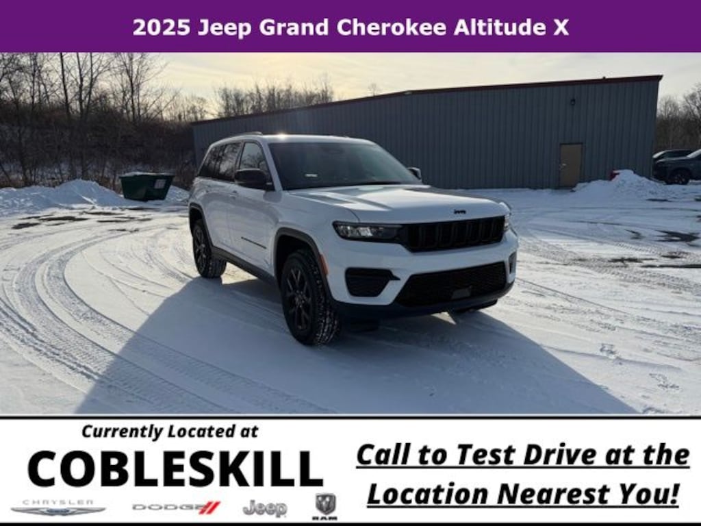 Bright White Clearcoat 2025 Jeep Grand Cherokee Altitude X 4WD 8-Speed Automatic 3.6L V6 24V VVT Save Time at the Dealership by Customizing your Deal Online!, 4WD, 115V Auxiliary Power Outlet, 4-Wheel Disc Brakes, 6 Speakers, ABS brakes, Air Conditioning, Alloy wheels, Altitude X, AM/FM radio: SiriusXM, Anti-whiplash front head restraints, Automatic temperature control, Black Headliner, Brake assist, Bumpers: body-color, Capri Leatherette/Suede Seats, Cloth Seats, Compass, Delay-off headlights, Delete Laredo Badge, Driver door bin, Driver vanity mirror, Dual front impact airbags, Dual front side impact airbags, Electronic Stability Control, Emergency communication system, Four wheel independent suspension, Front anti-roll bar, Front Bucket Seats, Front Center Armrest w/Storage, Front dual zone A/C, Front License Plate Bracket, Front reading lights, Fully automatic headlights, Gloss Black Exterior Accents, Heated door mirrors, Heated Front Seats, Heated Steering Wheel, Illuminated entry, Knee airbag, Low tire pressure warning, Model Year Tracking, Normal Duty Suspension, Occupant sensing airbag, Outside temperature display, Overhead airbag, Overhead console, Panic alarm, ParkView Rear Back-Up Camera, Passenger door bin, Passenger vanity mirror, Power door mirrors, Power driver seat, Power Liftgate, Power steering, Power Sunroof, Power windows, Quick Order Package 23M Altitude X, Radio data system, Radio: Uconnect 5 with 8.4" Display, Rain Sensitive Windshield Wipers, Rear anti-roll bar, Rear reading lights, Rear window defroster, Rear window wiper, Remote keyless entry, Remote Start System, Security system, Selectable Tire Fill Alert, Speed control, Speed-Sensitive Wipers, Split folding rear seat, Spoiler, Steering wheel mounted audio controls, Tachometer, Telescoping steering wheel, Tilt steering wheel, Traction control, Trip computer, Variably intermittent wipers, Voltmeter, Wheels: 17" x 6.5" Fully Painted Aluminum, Wheels: 18" x 8" Fully Painted Aluminum 1, Wireless Charging Pad, 4WD.