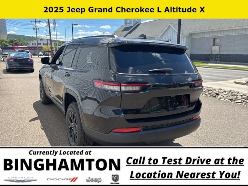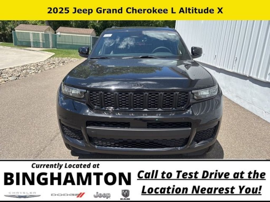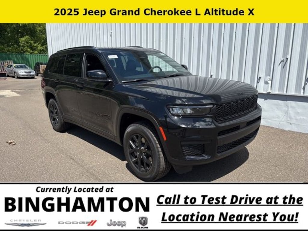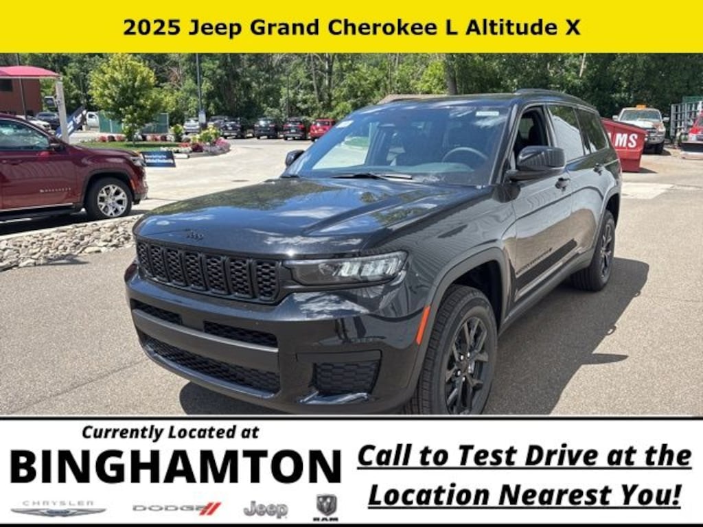 Diamond Black Crystal Pearlcoat 2025 Jeep Grand Cherokee L Altitude X 4WD 8-Speed Automatic 3.6L V6 24V VVT Save Time at the Dealership by Customizing your Deal Online!, 115V Auxiliary Power Outlet, 3.45 Rear Axle Ratio, 3rd Row Charge-Only USB Ports, 3rd row seats: split-bench, 4-Wheel Disc Brakes, 6 Speakers, ABS brakes, Air Conditioning, Alloy wheels, Altitude X, AM/FM radio: SiriusXM, Anti-whiplash front head restraints, Automatic temperature control, Black Headliner, Brake assist, Bumpers: body-color, Capri Leatherette/Suede Seats, Cloth Seats, Compass, Delay-off headlights, Delete Laredo Badge, Driver door bin, Driver vanity mirror, Dual front impact airbags, Dual front side impact airbags, Electronic Stability Control, Emergency communication system, Four wheel independent suspension, Front anti-roll bar, Front Bucket Seats, Front Center Armrest w/Storage, Front dual zone A/C, Front License Plate Bracket, Front reading lights, Fully automatic headlights, Gloss Black Exterior Accents, Heated door mirrors, Heated Front Seats, Heated Steering Wheel, Illuminated entry, Knee airbag, Low tire pressure warning, Manual Fold Seatbacks, Model Year Tracking, Normal Duty Suspension, Occupant sensing airbag, Outside temperature display, Overhead airbag, Overhead console, Panic alarm, ParkView Rear Back-Up Camera, Passenger door bin, Passenger vanity mirror, Power door mirrors, Power driver seat, Power Liftgate, Power steering, Power Sunroof, Power windows, Quick Order Package 23M Altitude X, Radio data system, Radio: Uconnect 5 w/8.4" Display, Rain Sensitive Windshield Wipers, Rear air conditioning, Rear anti-roll bar, Rear reading lights, Rear window defroster, Rear window wiper, Reclining 3rd row seat, Remote keyless entry, Remote Start System, Security system, Selectable Tire Fill Alert, Speed control, Speed-Sensitive Wipers, Split folding rear seat, Spoiler, Steering wheel mounted audio controls, Tachometer, Telescoping steering wheel, Tilt steering wheel, Traction control, Trip computer, Variably intermittent wipers, Voltmeter, Wheels: 18" x 8.0" Fully Painted Aluminum, Wheels: 18" x 8.0" Fully Painted Aluminum 1, Wireless Charging Pad.