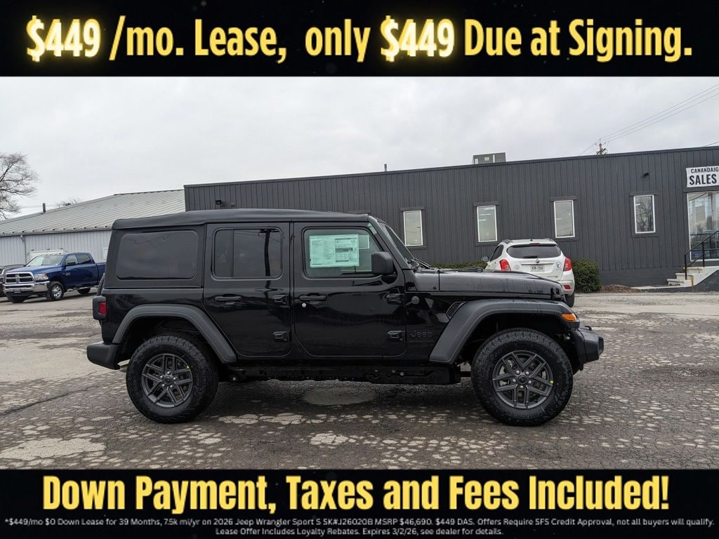 black clearcoat 2026 Jeep Wrangler Sport 4WD 8-Speed Automatic 2.0L I4 DOHC