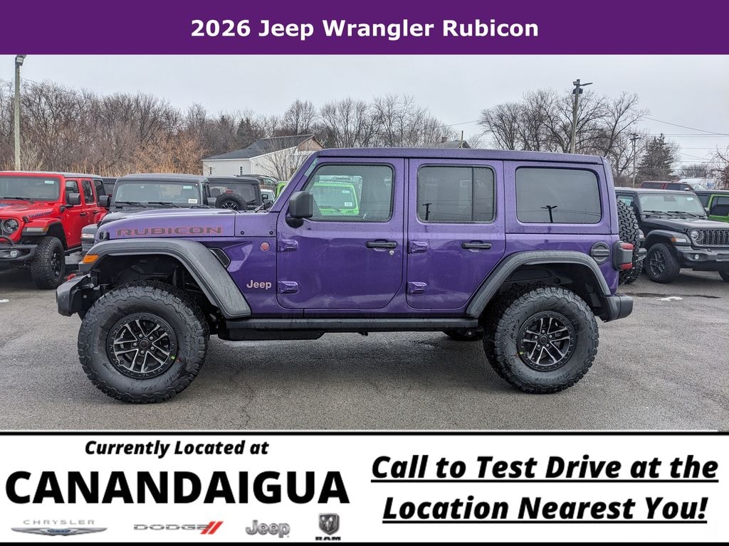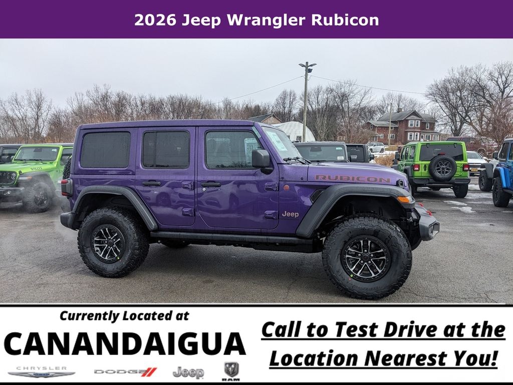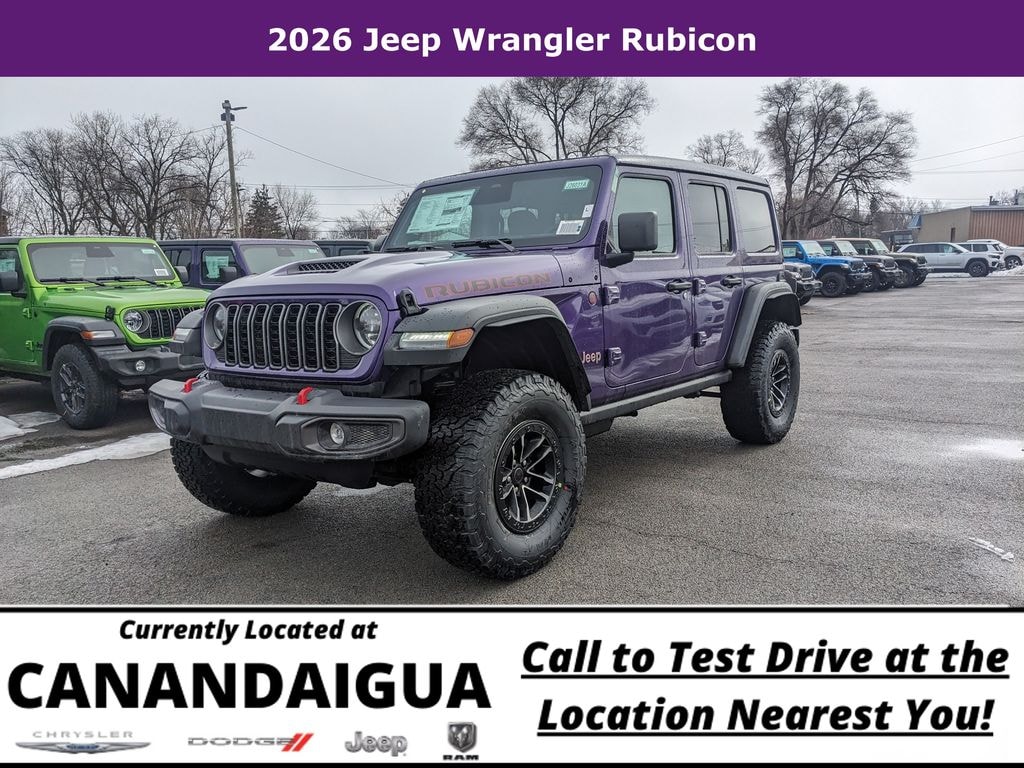 Discover the ultimate off-road adventure in the 2026 Jeep Wrangler Rubicon 4x4. This stunning purple SUV boasts a powerful 3.6L V6 24V VVT engine paired with an 8-Speed Automatic transmission, delivering exceptional 4WD performance and efficiency with an impressive 18 city / 23 highway MPG.