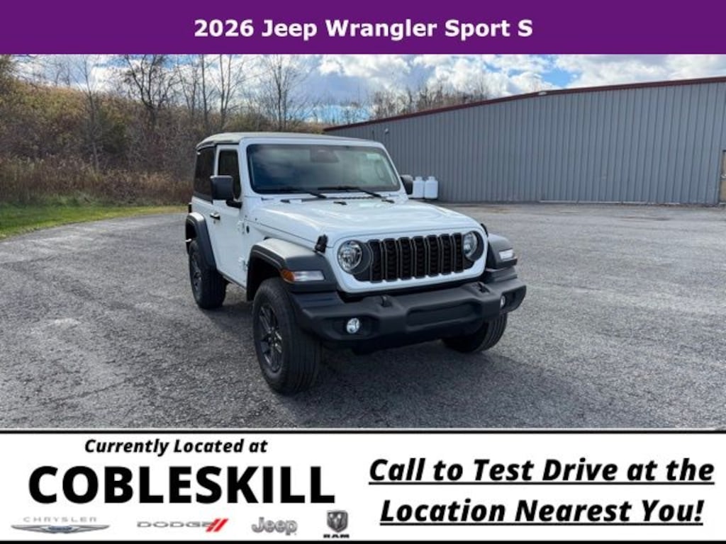 Bright White Clearcoat 2026 Jeep Wrangler Sport S 4WD 8-Speed Automatic 2.0L I4 DOHC Save Time at the Dealership by Customizing your Deal Online!, 2-Door Passive Entry, Front Door Locks, 3.45 Overall Top Gear Ratio, 4-Wheel Disc Brakes, 8 Speakers, ABS brakes, Advanced Brake Assist, Air Conditioning, Air Conditioning w/Auto Temperature Control, Air Filtering, AM/FM radio: SiriusXM with 360L, Apple CarPlay/Android Auto, Automatic Headlamps, Aux Battery, Brake assist, Cloth Low-Back Bucket Seats, Cluster 7.0" TFT Color Display, Compass, Convenience Group, Corning Gorilla Glass, Deep Tint Sunscreen Windows, Delay-off headlights, Driver door bin, Driver vanity mirror, Dual front impact airbags, Dual front side impact airbags, Electronic Stability Control, Emergency/Assistance Call, Enhanced Adaptive Cruise Control, Front anti-roll bar, Front Bucket Seats, Front Center Armrest w/Storage, Front fog lights, Front reading lights, Full Speed Forward Collision Warning Plus, Heated Front Seats, Heated Steering Wheel, Illuminated entry, Integrated roll-over protection, Low tire pressure warning, Non-Lock Fuel Cap w/o Discriminator, Normal Duty Suspension, Occupant sensing airbag, Outside temperature display, Overhead airbag, Panic alarm, ParkView Rear Back-Up Camera, Passenger door bin, Passenger vanity mirror, Power Heated Mirrors, Power steering, Power windows, Premium Wrapped Steering Wheel, Quick Order Package 22S Sport S, Radio data system, Radio: Uconnect 5 w/12.3" Display, Rear anti-roll bar, Rear reading lights, Remote keyless entry, Remote Start System, Security Alarm, Speed control, Steering wheel mounted audio controls, Stop-Start Dual Battery System, Sun Visors w/Illuminated Vanity Mirrors, Tachometer, Telescoping steering wheel, Tilt steering wheel, Traction control, Trip computer, Universal Garage Door Opener, Variably intermittent wipers, Wheels: 17" x 7.5" Black Steel Styled, Wheels: 17" x 7.5" Gray.