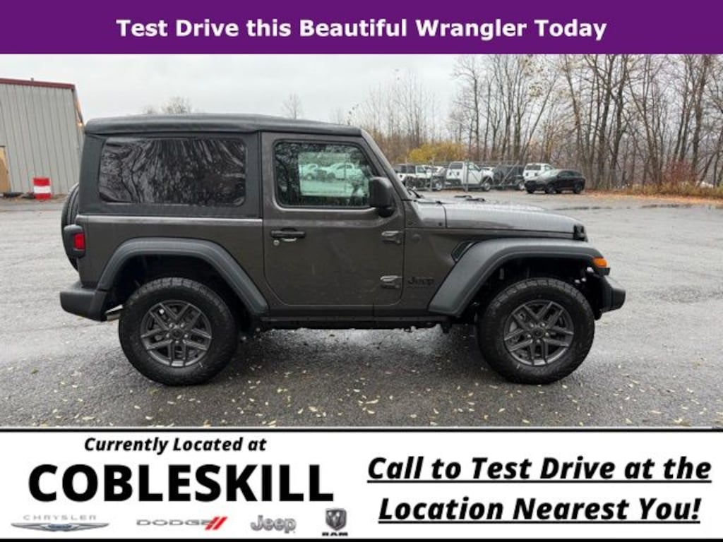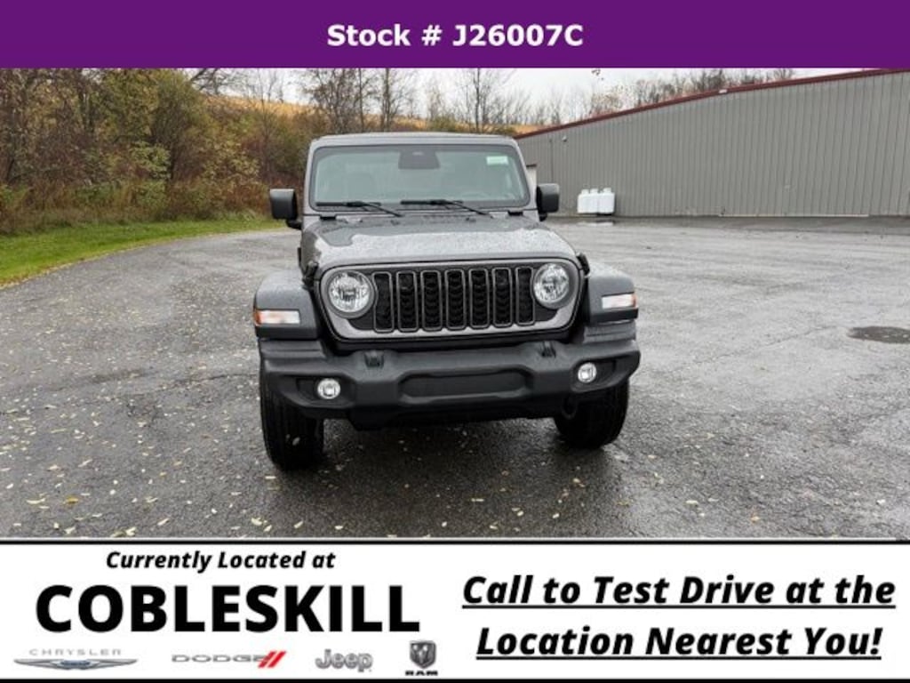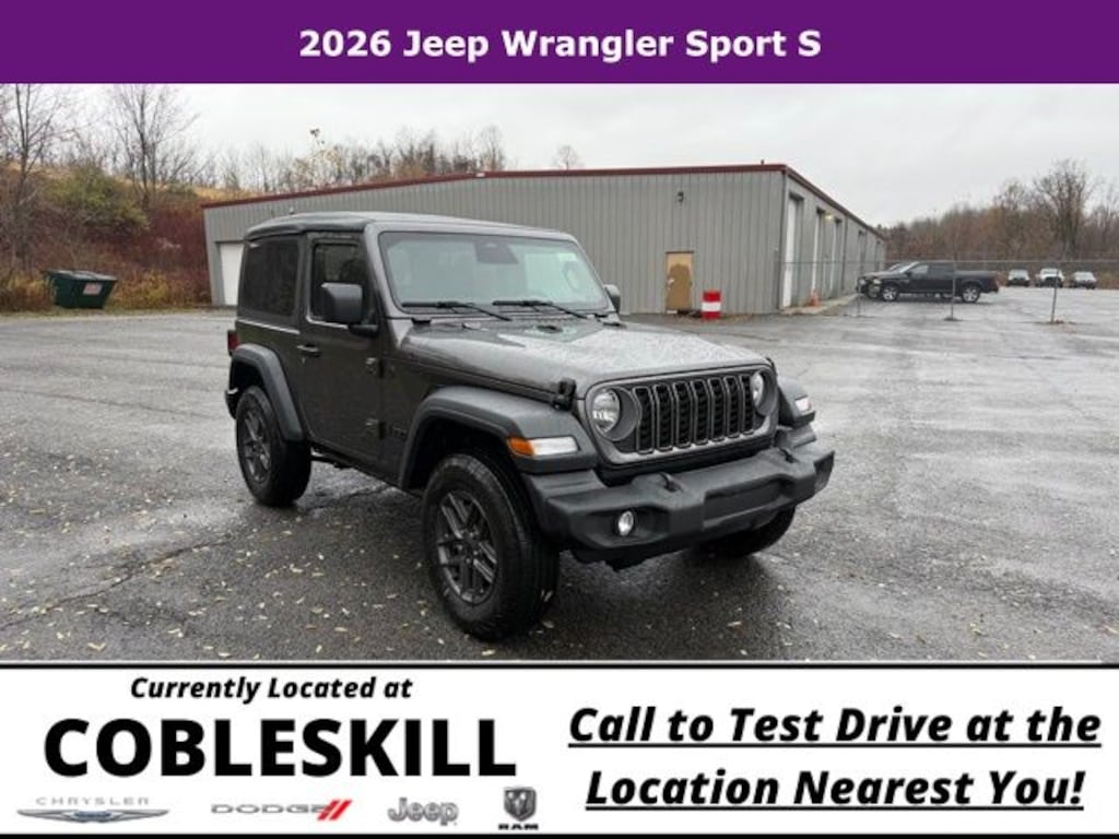 Granite Crystal Metallic Clearcoat 2026 Jeep Wrangler Sport S 4WD 8-Speed Automatic 2.0L I4 DOHC Save Time at the Dealership by Customizing your Deal Online!, 2-Door Passive Entry, Front Door Locks, 3.45 Overall Top Gear Ratio, 4-Wheel Disc Brakes, 8 Speakers, ABS brakes, Advanced Brake Assist, Air Conditioning, Air Conditioning w/Auto Temperature Control, Air Filtering, AM/FM radio: SiriusXM with 360L, Apple CarPlay/Android Auto, Automatic Headlamps, Aux Battery, Brake assist, Cloth Low-Back Bucket Seats, Cluster 7.0" TFT Color Display, Compass, Convenience Group, Corning Gorilla Glass, Deep Tint Sunscreen Windows, Delay-off headlights, Driver door bin, Driver vanity mirror, Dual front impact airbags, Dual front side impact airbags, Electronic Stability Control, Emergency/Assistance Call, Enhanced Adaptive Cruise Control, Front anti-roll bar, Front Bucket Seats, Front Center Armrest w/Storage, Front fog lights, Front reading lights, Full Speed Forward Collision Warning Plus, Heated Front Seats, Heated Steering Wheel, Illuminated entry, Integrated roll-over protection, Low tire pressure warning, Non-Lock Fuel Cap w/o Discriminator, Normal Duty Suspension, Occupant sensing airbag, Outside temperature display, Overhead airbag, Panic alarm, ParkView Rear Back-Up Camera, Passenger door bin, Passenger vanity mirror, Power Heated Mirrors, Power steering, Power windows, Premium Wrapped Steering Wheel, Quick Order Package 22S Sport S, Radio data system, Radio: Uconnect 5 w/12.3" Display, Rear anti-roll bar, Rear reading lights, Remote keyless entry, Remote Start System, Security Alarm, Speed control, Steering wheel mounted audio controls, Stop-Start Dual Battery System, Sun Visors w/Illuminated Vanity Mirrors, Tachometer, Telescoping steering wheel, Tilt steering wheel, Traction control, Trip computer, Universal Garage Door Opener, Variably intermittent wipers, Wheels: 17" x 7.5" Black Steel Styled, Wheels: 17" x 7.5" Gray.