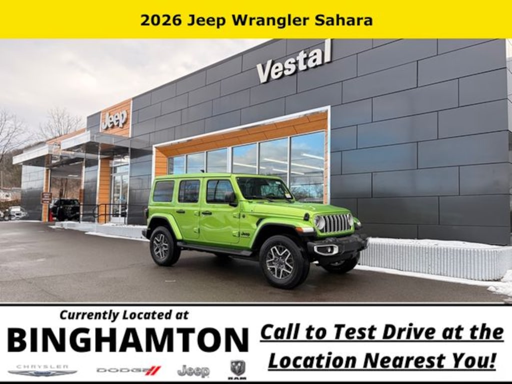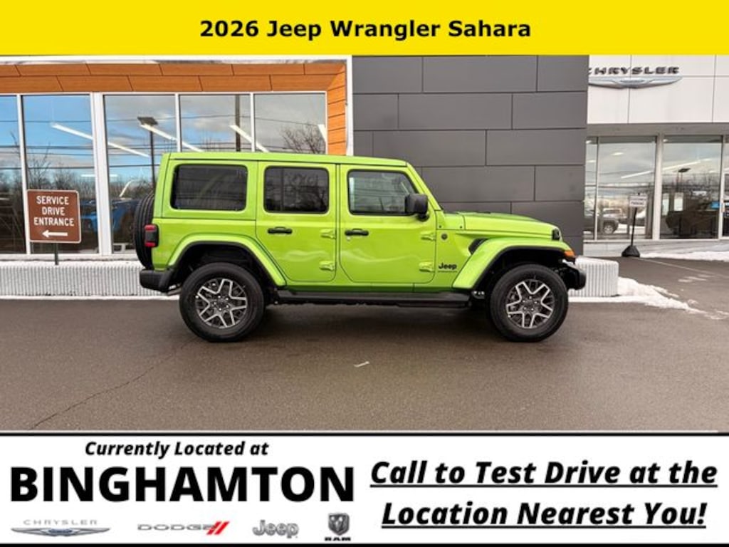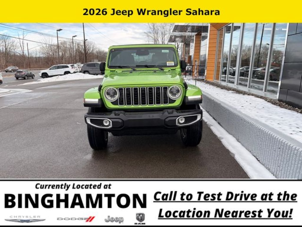 mojito clearcoat 2026 Jeep Wrangler Sahara 4WD 8-Speed Automatic 2.0L I4 DOHC Save Time at the Dealership by Customizing your Deal Online!, 12.3" Touchscreen Display, 3.45 Overall Top Gear Ratio, 4-Wheel Disc Brakes, 4G LTE Wi-Fi Hot Spot, 8 Speakers, ABS brakes, Air Conditioning, Alloy wheels, Alpine Premium Audio System, AM/FM radio: SiriusXM with 360L, Apple CarPlay, Apple CarPlay/Android Auto, Auto High Beam Headlamp Control, Auto-Dimming Rear-View Mirror, Automatic temperature control, Aux Battery, Blind Spot & Cross Path Detection, Brake assist, Cloth Low-Back Bucket Seats, Compass, Connected Travel & Traffic Services, Connectivity - US/Canada, Delay-off headlights, Driver door bin, Driver vanity mirror, Dual front impact airbags, Dual front side impact airbags, Electronic Stability Control, Emergency communication system: Jeep Connect, For More Info, Call 800-643-2112, Front anti-roll bar, Front Bucket Seats, Front Center Armrest w/Storage, Front dual zone A/C, Front fog lights, Front License Plate Bracket, Front reading lights, Fully automatic headlights, Google Android Auto, GPS Navigation, Hard Seat Back, HD Radio, Heated door mirrors, Heated front seats, Heated steering wheel, Heavy Duty Suspension w/Gas Shocks, Illuminated entry, Integrated Center Stack Radio, Integrated Off-Road Camera, Integrated roll-over protection, Integrated Voice Command w/Bluetooth, Leather Wrapped Park Brake Handle, Leather Wrapped Shift Knob, Low tire pressure warning, McKinley Trimmed Seats, MOPAR All-Weather Floor Mats, MyFlexCare Service Plan, Non-Lock Fuel Cap w/o Discriminator, Occupant sensing airbag, Outside temperature display, Overhead airbag, Panic alarm, ParkSense Rear Park Assist System, ParkView Rear Back-Up Camera, Passenger door bin, Passenger vanity mirror, Power 4-Way Driver Lumbar Adjust, Power 4-Way Passenger Lumbar Adjust, Power Adjust 8-Way Driver Seat, Power Adjust 8-Way Front Passenger Seat, Power door mirrors, Power steering, Power Top Quarter Window Storage Bag, Power windows, Quick Order Package 22G, Radio data system, Radio: Uconnect 5 Nav w/12.3" Display, Radio: Uconnect 5 w/12.3" Display, Rear anti-roll bar, Rear reading lights, Rear Window Defroster, Rear Window Wiper/Washer, Remote keyless entry, Removable Rear Quarter Windows, Sahara Popular Equipment Group, Security system, Side Steps, SiriusXM Radio Service, SiriusXM w/360L, Sky 1-Touch Power Top, Speed control, Split folding rear seat, Steering wheel mounted audio controls, Stop-Start Dual Battery System, Tachometer, Telescoping steering wheel, Tilt steering wheel, Traction control, Trip computer, Universal Garage Door Opener, Variably intermittent wipers, Voltmeter, Wheels: 18" x 7.5" Machine/Painted Gray.