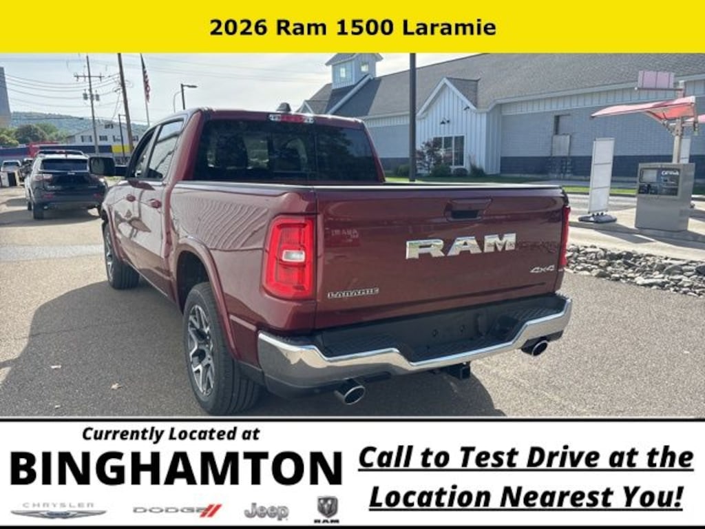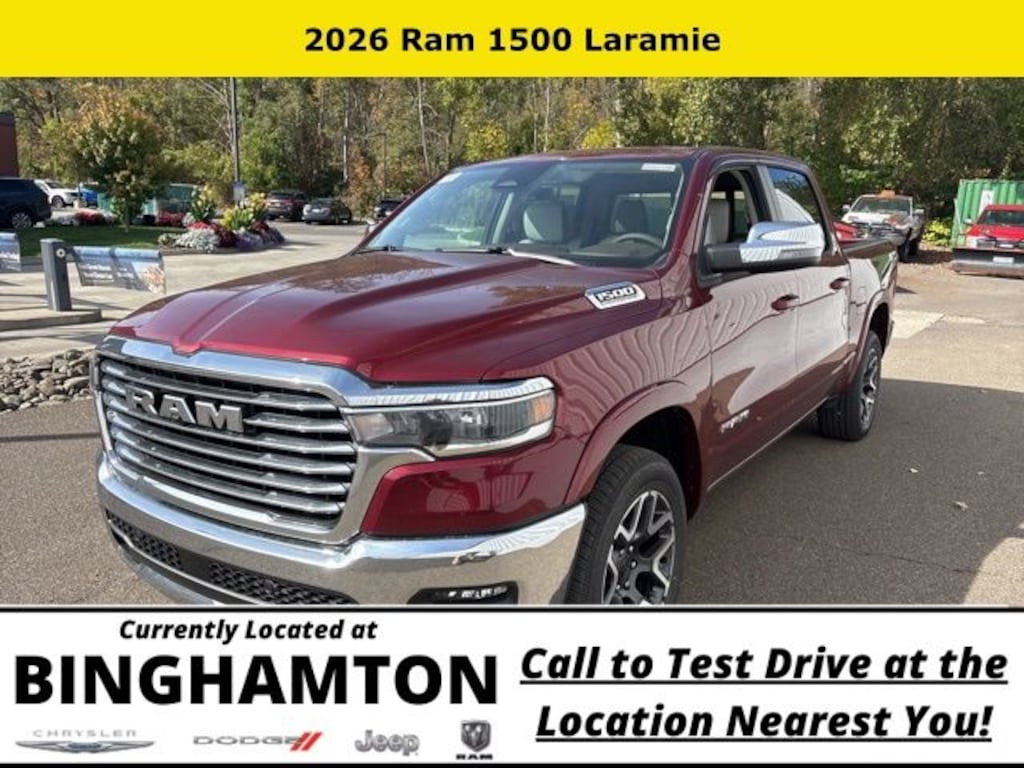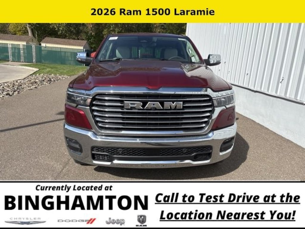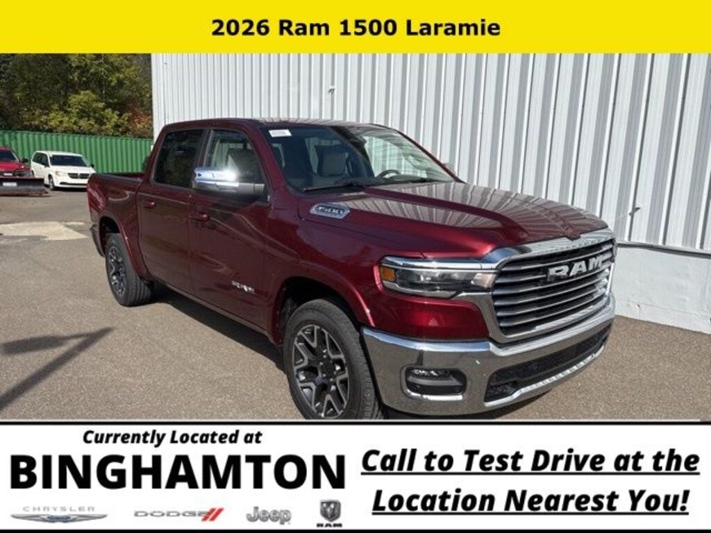 Delmonico Red Pearlcoat 2026 Ram 1500 Laramie 4WD 8-Speed Automatic 3.0L I6 Save Time at the Dealership by Customizing your Deal Online!, 10 Speakers, 3.55 Rear Axle Ratio, 4-Wheel Disc Brakes, 4G LTE Wi-Fi Hot Spot, ABS brakes, Active Noise Control System, Air Conditioning, Alloy wheels, AM/FM radio: SiriusXM with 360L, Apple CarPlay/Android Auto, Audio memory, Auto High-beam Headlights, Auto Power-Folding Mirrors, Auto-dimming door mirrors, Auto-Dimming Exterior Driver Mirror, Auto-dimming Rear-View mirror, Automatic temperature control, Brake assist, Bumpers: chrome, Chrome Exterior Mirrors, Compass, Connected Travel and Traffic Services, Connectivity - US/Canada, Convex Wide-Angle Exterior Mirror Insert, Delay-off headlights, Driver door bin, Driver vanity mirror, Dual front impact airbags, Dual front side impact airbags, Electronic Stability Control, Exterior Mirrors Courtesy Lamps, Exterior Mirrors with Heating Element, Exterior Mirrors with Memory, Exterior Mirrors with Supplemental Signals, Front anti-roll bar, Front Bucket Seats, Front Center Armrest w/Storage, Front dual zone A/C, Front fog lights, Front License Plate Bracket, Front reading lights, Front wheel independent suspension, Fully automatic headlights, Garage door transmitter, GPS Navigation, Heated door mirrors, Heated front seats, Heated rear seats, Heated steering wheel, Illuminated entry, Integrated Center Stack Radio, Integrated Voice Command with Bluetooth, Laramie Level 1 Equipment Group, Leather steering wheel, Leather Trimmed Bucket Seats, Low tire pressure warning, Manufacturer's Statement of Origin, Memory seat, MOPAR Front and Rear Rubber Floor Mats, Navigation System, Occupant sensing airbag, Off-Road Information Pages, Outside temperature display, Overhead airbag, Overhead console, Panic alarm, ParkView Rear Back-Up Camera, Passenger door bin, Passenger vanity mirror, Power door mirrors, Power driver seat, Power passenger seat, Power steering, Power windows, Quick Order Package 21H Laramie, Radio data system, Radio: Uconnect 5 Navigation with 12.0" Display, Rain Sensitive Windshield Wipers, RAM Grille Badge - Chrome, Rear anti-roll bar, Rear reading lights, Rear seat center armrest, Rear step bumper, Remote keyless entry, Remote Tailgate Release, Security system, SiriusXM Radio Service, SiriusXM with 360L, Speed control, Split folding rear seat, Steering wheel mounted audio controls, Tachometer, Telescoping steering wheel, Tilt steering wheel, Traction control, Trip computer, Turn signal indicator mirrors, USB Host Flip, Variably intermittent wipers, Ventilated front seats, Voltmeter, Wheels: 20" x 9" Premium Paint/Polish.