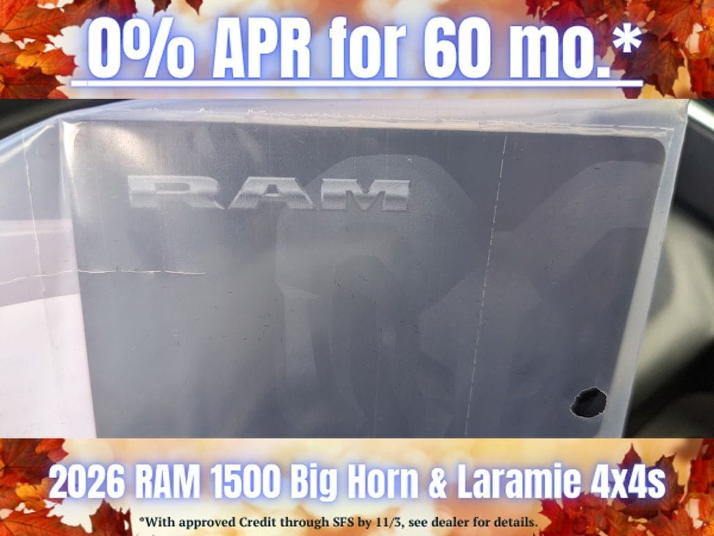 Save Time at the Dealership by Customizing your Deal Online!, Service Records on File, 10 Speakers, 33 Gallon Fuel Tank, 4-Wheel Disc Brakes, 4G LTE Wi-Fi Hot Spot, ABS brakes, Air Conditioning, Alloy wheels, AM/FM radio: SiriusXM with 360L, Anti-Spin Differential Rear Axle, Apple CarPlay/Android Auto, Audio memory, Auto High-beam Headlights, Auto Power-Folding Mirrors, Auto-dimming door mirrors, Auto-Dimming Exterior Driver Mirror, Auto-dimming Rear-View mirror, Automatic temperature control, Black Interior Accents, Brake assist, Bumpers: chrome, Chrome Exterior Mirrors, Compass, Connected Travel & Traffic Services, Connectivity - US/Canada, Convex Wide-Angle Exterior Mirror Insert, Delay-off headlights, Dome Dual LED Reading Lamp, Driver door bin, Driver vanity mirror, Dual front impact airbags, Dual front side impact airbags, Dual-Pane Panoramic Sunroof, Electronic Stability Control, Exterior Mirrors Courtesy Lamps, Exterior Mirrors w/Heating Element, Exterior Mirrors w/Memory, Exterior Mirrors w/Supplemental Signals, Front anti-roll bar, Front Bucket Seats, Front Center Armrest w/Storage, Front dual zone A/C, Front fog lights, Front reading lights, Front wheel independent suspension, Fully automatic headlights, Garage door transmitter, GPS Navigation, Heated door mirrors, Heated front seats, Heated rear seats, Heated steering wheel, Illuminated entry, Integrated Center Stack Radio, Integrated Voice Command w/Bluetooth, Laramie Level 2 Equipment Group, Leather steering wheel, Leather Trimmed Bucket Seats, LED Dome/Reading Lamp, Low tire pressure warning, Manufacturer's Statement of Origin, Memory seat, MOPAR Front & Rear Rubber Floor Mats, Navigation System, Night Edition, Occupant sensing airbag, Off-Road Information Pages, Outside temperature display, Overhead airbag, Overhead console, Panic alarm, ParkView Rear Back-Up Camera, Passenger door bin, Passenger vanity mirror, Power Deployable Running Boards, Power door mirrors, Power driver seat, Power passenger seat, Power steering, Power windows, Quick Order Package 21H Laramie, Radio data system, Radio: Uconnect 5 Nav w/12.0" Display, Radio: Uconnect 5 Nav w/14.4" Display, RAM Grille Badge - Chrome, Rear anti-roll bar, Rear reading lights, Rear seat center armrest, Rear step bumper, Remote keyless entry, Security system, SiriusXM Radio Service, SiriusXM w/360L, Speed control, Split folding rear seat, Steering wheel mounted audio controls, Tachometer, Telescoping steering wheel, Tilt steering wheel, Traction control, Trailer Brake Control, Trip computer, Turn signal indicator mirrors, USB Host Flip, Variably intermittent wipers, Ventilated front seats, Voltmeter, Wheels: 20" x 9" Premium Paint/Polish, Wheels: 22" x 9" Forged Aluminum.