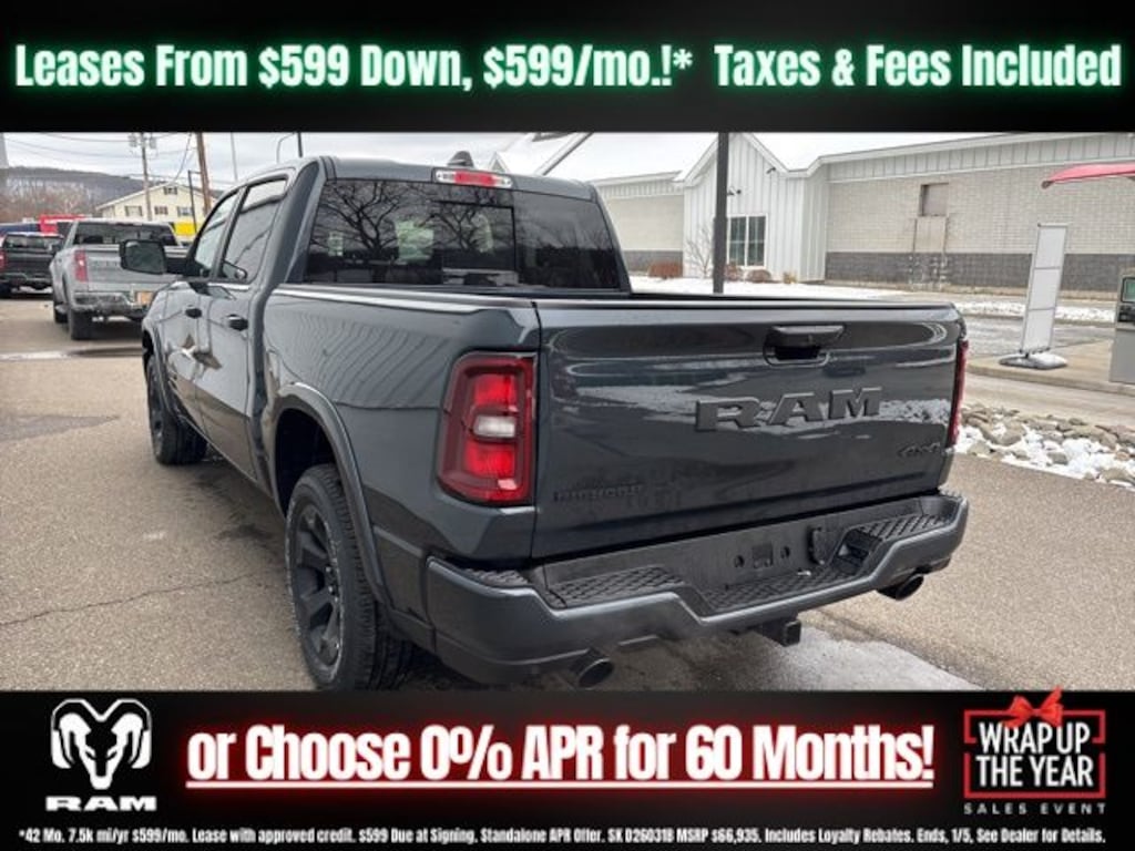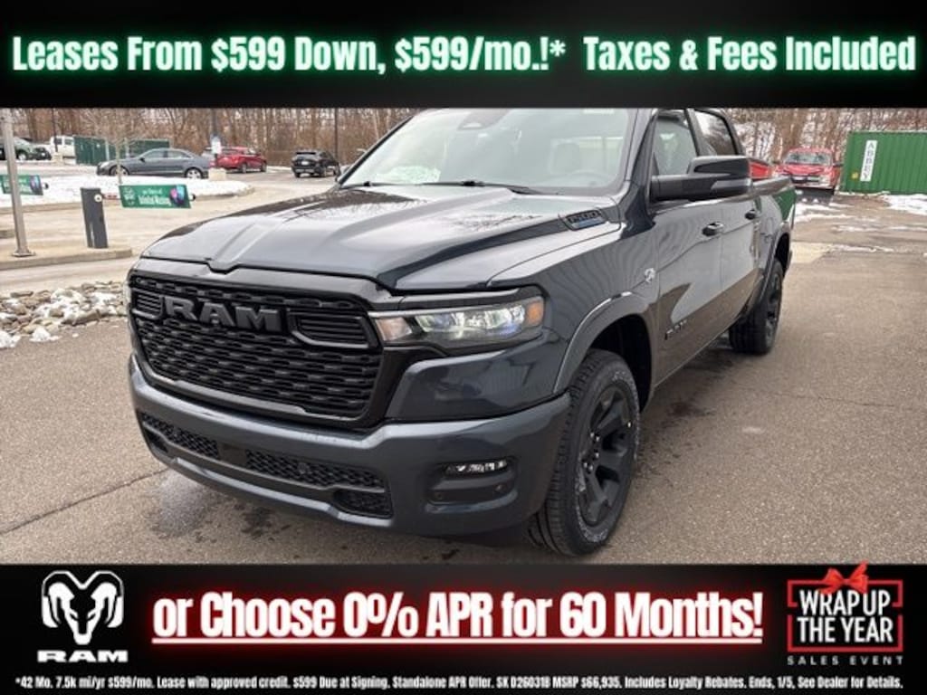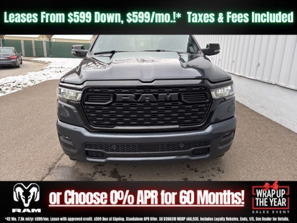 Forged Blue Metallic 2026 Ram 1500 Big Horn/Lone Star 4WD 8-Speed Automatic HEMI 5.7L V8 Multi Displacement VVT eTorque Save Time at the Dealership by Customizing your Deal Online!, 115V Auxiliary Power Outlet, 115V Auxiliary Rear Power Outlet, 12" Touchscreen Display, 2nd Row in Floor Storage Bins, 3 Rear Seat Head Restraints, 4 Way Front Headrests, 4-Wheel Disc Brakes, 400W Inverter, 48V Belt Starter Generator, 4G LTE Wi-Fi Hot Spot, 6 Speakers, 9 Amplified Speakers with Subwoofer, ABS brakes, Accent Color Door Handles, Accent Color Premium Power Mirrors, Accent Color Tailgate Handle, Air Conditioning, Air Conditioning ATC with Dual Zone Control, Alloy wheels, AM/FM radio, Anti-Spin Differential Rear Axle, Apple CarPlay, Apple CarPlay/Android Auto, Auto High-beam Headlights, Auto Power-Folding Mirrors, Auto-Dimming Exterior Driver Mirror, Auto-Dimming Rear-View Mirror, Big Horn Level 2 Equipment Group, Black Exterior Mirrors, Black Exterior Truck Badging, Black Headlamp Bezels, Black Interior Accents, Black Painted Exterior Mirrors Caps, Black Premium Power Mirrors, Black Tail Lamp Bezels, Body Color Fender Flares, Body Color Front Bumper, Body Color Rear Bumper with Step Pads, Brake assist, Bucket Seats, Bumpers: chrome, Center Console Parts Module, Cloth Bucket Seats, Cluster 12" TFT Color Display, Cluster 7.0" TFT Color Display, Compass, Configurable Drive Mode, Connected Travel and Traffic Services, Connectivity - US/Canada, Convex Wide-Angle Exterior Mirror Insert, Delay-off headlights, Deluxe Cloth Bucket Seats, Disassociated Touchscreen Display, Driver door bin, Dual Exhaust with Black Tips, Dual front impact airbags, Dual front side impact airbags, Electronic Stability Control, Exterior Mirrors Courtesy Lamps, Exterior Mirrors with Heating Element, Exterior Mirrors with Supplemental Signals, Front anti-roll bar, Front Bucket Seats, Front Center Armrest w/Storage, Front fog lights, Front License Plate Bracket, Front reading lights, Front Seat Back Map Pockets, Front wheel independent suspension, Full Length Floor Console, Fully automatic headlights, Global Telematics Box Module, Glove Box Lamp, Google Android Auto, GPS Antenna Input, GPS Navigation, Grille Black Surround Black Mesh, HD Radio, Heated door mirrors, Heated Front Seats, Heated Steering Wheel, Illuminated entry, Integrated Center Stack Radio, Integrated Voice Command with Bluetooth, Leather Wrapped Steering Wheel, LED Dome Lamp with on/Off Switch, LED Footwell Lighting, Low tire pressure warning, Manual Adjust 4-Way Driver Seat, Manual Adjust 4-Way Front Passenger Seat, Manual Folding Exterior Mirrors, Media Hub with 2 Charge Only USBs, MOPAR Front and Rear Rubber Floor Mats, Night Edition, Occupant sensing airbag, Outside temperature display, Overhead airbag, Overhead console, Overhead LED Lamps, Panic alarm, ParkView Rear Back-Up Camera, Passenger door bin, Passenger vanity mirror, Power 2-Way Driver Lumbar Adjust, Power Adjust 8-Way Driver Seat, Power Adjustable Pedals, Power door mirrors, Power steering, Power windows, Premium Overhead Console, Quick Order Package 27Z Big Horn, Radio data system, Radio: Uconnect 5 Navigation with 12.0" Display, Radio: Uconnect 5 W with 8.4" Display, RAM Grille Badge - Black, RAM Grille Badge - Chrome, Rear 60/40 Folding Seat, Rear anti-roll bar, Rear Center Armrest, Rear Power Sliding Window, Rear step bumper, Rear Window Defroster, Remote keyless entry, Remote Tailgate Release, Security Alarm, SiriusXM Radio Service, SiriusXM with 360L, Speed control, Steering Wheel Mounted Audio Controls, Sun Visors with Illuminated Vanity Mirrors, Supplier Part Tracking (J-1), Tachometer, Telescoping steering wheel, Tilt steering wheel, Traction control, Trailer Brake Control, Trip computer, Universal Garage Door Opener, USB Host Flip, Variably intermittent wipers, Voltmeter, Wheels: 20" x 9.0" Aluminum Painted Clad.