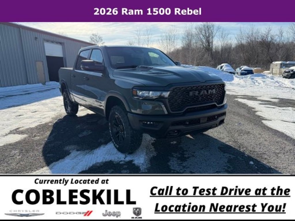 Canyon Lake 2026 Ram 1500 Rebel 4WD 8-Speed Automatic 3.0L I6 Save Time at the Dealership by Customizing your Deal Online!, 10 Speakers, 3.92 Rear Axle Ratio, 4 Way Front Headrests, 4-Wheel Disc Brakes, 4G LTE Wi-Fi Hot Spot, ABS brakes, Active Noise Control System, Air Conditioning, Alloy wheels, AM/FM radio: SiriusXM with 360L, Apple CarPlay, Apple CarPlay/Android Auto, Auto High-beam Headlights, Auto Power-Folding Mirrors, Auto-Dimming Exterior Driver Mirror, Auto-dimming Rear-View mirror, Automatic temperature control, Bed Utility Group, Black Exterior Mirrors, Black Premium Power Mirrors, Brake assist, Bucket Seats, Cloth/Vinyl Bucket Seats, Compass, Connected Travel and Traffic Services, Connectivity - US/Canada, Convex Wide-Angle Exterior Mirror Insert, Delay-off headlights, Disassociated Touchscreen Display, Driver door bin, Driver vanity mirror, Dual front impact airbags, Dual front side impact airbags, Electronic Stability Control, Exterior 115V AC Outlet, Exterior Mirrors Courtesy Lamps, Exterior Mirrors with Heating Element, Exterior Mirrors with Supplemental Signals, Front anti-roll bar, Front Bucket Seats, Front Center Armrest w/Storage, Front dual zone A/C, Front fog lights, Front License Plate Bracket, Front reading lights, Front Seat Back Map Pockets, Front wheel independent suspension, Full Length Upgraded Floor Console, Fully automatic headlights, Garage door transmitter, Global Telematics Box Module, Google Android Auto, GPS Antenna Input, GPS Navigation, HD Radio, Heated door mirrors, Heated Front Seats, Heated front seats, Heated Steering Wheel, Heated steering wheel, Illuminated entry, Integrated Center Stack Radio, Integrated Voice Command with Bluetooth, Leather steering wheel, Low tire pressure warning, Manual Folding Exterior Mirrors, Manufacturer's Statement of Origin, MOPAR 4 Adjustable Cargo Tie-Down Hooks, MOPAR Spray in Bedliner, Navigation System, Occupant sensing airbag, Off-Road Information Pages, Outside temperature display, Overhead airbag, Overhead console, Panic alarm, ParkView Rear Back-Up Camera, Passenger door bin, Passenger vanity mirror, Power 2-Way Driver Lumbar Adjust, Power Adjust 8-Way Driver Seat, Power Adjustable Pedals, Power door mirrors, Power driver seat, Power steering, Power windows, Quick Order Package 21W Rebel, Radio data system, Radio: Uconnect 5 Navigation with 12.0" Display, Rear 60/40 Folding Seat, Rear anti-roll bar, Rear seat center armrest, Rear step bumper, Rear Window Defroster, Rebel Level 1 Equipment Group, Remote keyless entry, Remote Tailgate Release, SiriusXM Radio Service, SiriusXM with 360L, Speed control, Split folding rear seat, Steering wheel mounted audio controls, Tachometer, Telescoping steering wheel, Tilt steering wheel, Traction control, Trailer Brake Control, Trip computer, USB Host Flip, Variably intermittent wipers, Voltmeter, Wheels: 18" x 8.0" Painted Mid-Gloss Black, Wireless Charging Pad.