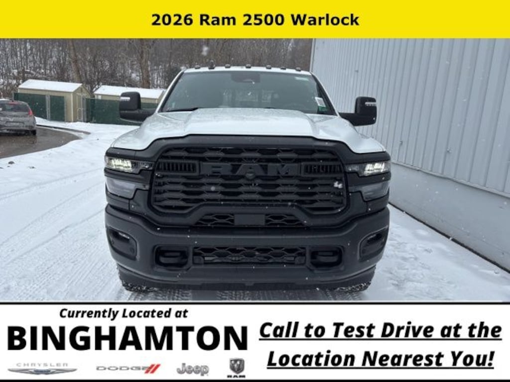Bright White Clearcoat 2026 Ram 2500 Tradesman 4WD 8-Speed Automatic 6.4L V8 Save Time at the Dealership by Customizing your Deal Online!, 115-Volt Auxiliary Front Power Outlet, 12" Touchscreen Display, 2 Way Rear Headrest Seat, 3.73 Axle Ratio, 4 Way Front Headrests, 4-Wheel Disc Brakes, 40/20/40 Split Bench Seat, 400W Inverter, 4G LTE Wi-Fi Hot Spot, 6 Speakers, ABS brakes, Air Conditioning, Air Conditioning ATC with Dual Zone Control, Alexa Built-in, AM/FM radio: SiriusXM, Anti-Spin Differential Rear Axle, Apple CarPlay, Apple CarPlay/Android Auto, Auto Power-Folding Mirrors, Auto-Dimming Rear-View Mirror, Bed Convenience Group, Black Exterior Mirrors, Black Wheel Center Hub, Black Wheel Flares, Brake assist, Carpet Floor Covering, Clearance Lamps, Cloth 40/20/40 Bench Seat, Compass, Connected Travel and Traffic Services, Connectivity - US/Canada, Delay-off headlights, Disassociated Touchscreen Display, Driver door bin, Dual front impact airbags, Dual front side impact airbags, Electronic Stability Control, Emergency Vehicle Alert System (EVAS), Exterior 115V AC Outlet, Exterior Mirrors Courtesy Lamps, Exterior Mirrors with Heating Element, Exterior Mirrors with Supplemental Signals, For Details, Visit DriveUconnect.com, For More Info, Call 800-643-2112, Forward and Reverse Utility Lights, Front anti-roll bar, Front Armrest with Cupholders, Front Center Armrest w/Storage, Front fog lights, Front License Plate Bracket, Front Performance Tuned Shock Absorbers, Front reading lights, Fully automatic headlights, Global Telematics Box Module, Google Android Auto, GPS Antenna Input, GPS Navigation, HD Radio, Hill Descent Control, Illuminated entry, Integrated Voice Command with Bluetooth, LED Bed Lighting, Low tire pressure warning, Manual Adjust 4-Way Driver Seat, Manual Adjust 4-Way Front Passenger Seat, Manual Folding Exterior Mirrors, Manual Telescoping Mirrors, Manufacturer's Statement of Origin, Mirror Running Lights, Mopar Black Tubular Side Steps, MOPAR Front and Rear Rubber Floor Mats, MOPAR Spray in Bedliner, Occupant sensing airbag, Off-Road Info Pages, Outside temperature display, Overhead airbag, Overhead console, Panic alarm, ParkView Rear Back-Up Camera, Passenger door bin, Passenger vanity mirror, Power Adjust Mirrors, Power Heated Folding Telescopic Mirrors, Power steering, Power Telescoping Mirrors, Power windows, Power-Adjustable Convex Aux Mirrors, Quick Order Package 2UB Warlock, Radio data system, Radio: Uconnect 5 Navigation with 12.0" Display, Radio: Uconnect 5 with 8.4" Display, Rear anti-roll bar, Rear Folding Seat, Rear Performance Tuned Shock Absorbers, Rear Power Sliding Window, Rear step bumper, Rear Wheelhouse Liners, Rear window defroster, Remote keyless entry, Remote USB Port - Charge Only, Selectable Tire Fill Alert, SiriusXM Radio Service, SiriusXM with 360L, Speed control, Storage Tray, Tachometer, Tilt steering wheel, Tinted Acoustic Windshield Glass, Traction control, Tradesman Level 1 Equipment Group, Trailer Tow Pages, Variably intermittent wipers, Voltmeter, Warlock Decal, Wheels: 17" x 7.5" Black Steel Styled, Wheels: 20" x 8.0" Black Diamond Cut Aluminum.