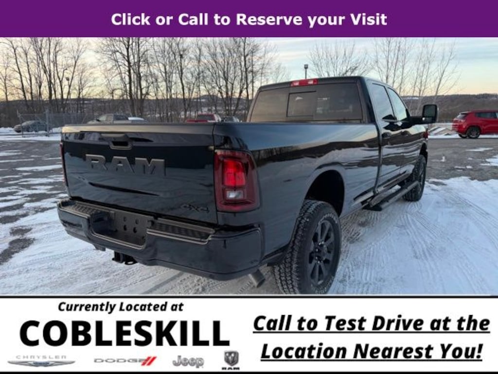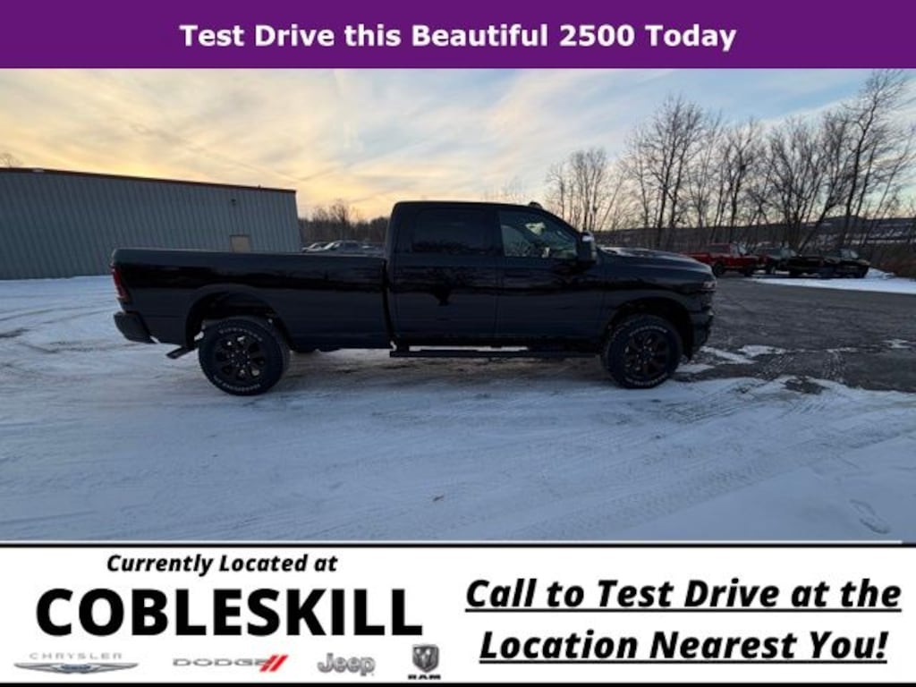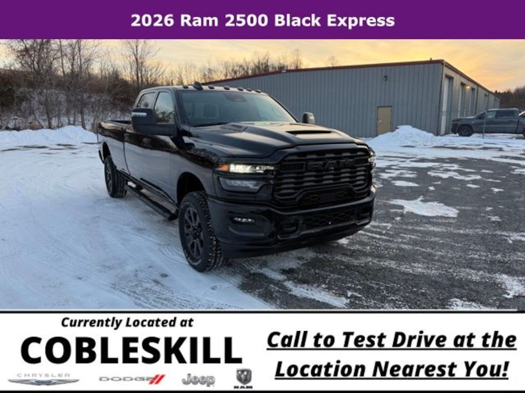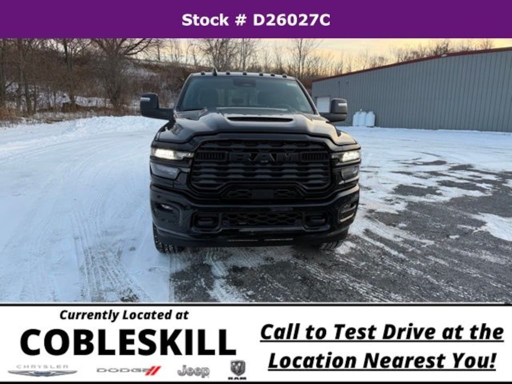 Diamond Black Crystal Pearlcoat 2026 Ram 2500 Tradesman 4WD 8-Speed Automatic 6.4L V8 Save Time at the Dealership by Customizing your Deal Online!, 115-Volt Auxiliary Front Power Outlet, 12" Touchscreen Display, 2 Way Rear Headrest Seat, 4 Way Front Headrests, 4-Wheel Disc Brakes, 40/20/40 Split Bench Seat, 400W Inverter, 4G LTE Wi-Fi Hot Spot, 6 Speakers, ABS brakes, Air Conditioning, Air Conditioning ATC with Dual Zone Control, Alexa Built-in, AM/FM radio: SiriusXM, Anti-Spin Differential Rear Axle, Apple CarPlay, Apple CarPlay/Android Auto, Auto Power-Folding Mirrors, Auto-Dimming Rear-View Mirror, Bed Convenience Group, Black Exterior Mirrors, Black Wheel Center Hub, Body Color Grille-Surround, Brake assist, Carpet Floor Covering, Clearance Lamps, Cloth 40/20/40 Bench Seat, Compass, Connected Travel and Traffic Services, Connectivity - US/Canada, Delay-off headlights, Disassociated Touchscreen Display, Driver door bin, Dual front impact airbags, Dual front side impact airbags, Electronic Stability Control, Emergency Vehicle Alert System (EVAS), Exterior 115V AC Outlet, Exterior Mirrors Courtesy Lamps, Exterior Mirrors with Heating Element, Exterior Mirrors with Supplemental Signals, For Details, Visit DriveUconnect.com, For More Info, Call 800-643-2112, Forward and Reverse Utility Lights, Front and Rear Floor Mats, Front anti-roll bar, Front Armrest with Cupholders, Front Center Armrest w/Storage, Front fog lights, Front License Plate Bracket, Front reading lights, Fully automatic headlights, Global Telematics Box Module, Google Android Auto, GPS Antenna Input, GPS Navigation, HD Radio, Illuminated entry, Integrated Voice Command with Bluetooth, LED Bed Lighting, Low tire pressure warning, Manual Adjust 4-Way Driver Seat, Manual Adjust 4-Way Front Passenger Seat, Manual Folding Exterior Mirrors, Manual Telescoping Mirrors, Manufacturer's Statement of Origin, Mirror Running Lights, Mopar Black Tubular Side Steps, MOPAR Front and Rear Rubber Floor Mats, MOPAR Spray in Bedliner, Occupant sensing airbag, Off-Road Info Pages, Outside temperature display, Overhead airbag, Overhead console, Painted Front Bumper, Painted Rear Bumper, Panic alarm, ParkSense Front/Rear Park Assist System, ParkView Rear Back-Up Camera, Passenger door bin, Passenger vanity mirror, Power Adjust Mirrors, Power Heated Folding Telescopic Mirrors, Power steering, Power Telescoping Mirrors, Power windows, Power-Adjustable Convex Aux Mirrors, Quick Order Package 2UC Black Express, Radio data system, Radio: Uconnect 5 Navigation with 12.0" Display, Radio: Uconnect 5 with 8.4" Display, Rear anti-roll bar, Rear Backup Alarm, Rear Folding Seat, Rear Power Sliding Window, Rear step bumper, Rear Wheelhouse Liners, Rear window defroster, Remote keyless entry, Remote USB Port - Charge Only, Selectable Tire Fill Alert, SiriusXM Radio Service, SiriusXM with 360L, Speed control, Sport Performance Hood, Storage Tray, Tachometer, Tilt steering wheel, Tinted Acoustic Windshield Glass, Traction control, Tradesman Level 1 Equipment Group, Trailer Tow Pages, Variably intermittent wipers, Voltmeter, Wheels: 17" x 7.5" Black Steel Styled, Wheels: 20" x 8.0" Black Painted Aluminum.