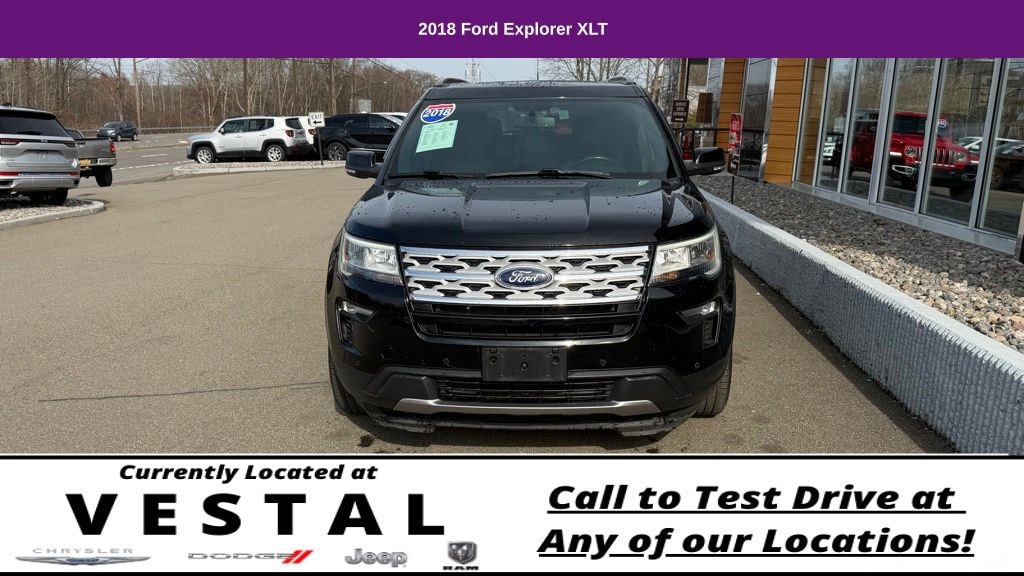 4WD, 2 Driver Configurable 4.2" Color LCD Displays, 20" Polished Aluminum Wheels, 3.65 Axle Ratio, 3rd row seats: split-bench, 4-Wheel Disc Brakes, 6 Speakers, ABS brakes, Air Conditioning, Alloy wheels, AM/FM radio: SiriusXM, AM/FM Stereo, Auto-Dimming Rear-View Mirror, Brake assist, Bumpers: body-color, Class III Trailer Tow Package, Comfort Package, Compass, Delay-off headlights, Driver Connect Package, Driver door bin, Driver vanity mirror, Dual front impact airbags, Dual front side impact airbags, Dual-Zone Electronic Automatic Temperature Ctrl, Electronic Stability Control, Emergency communication system: 911 Assist, Equipment Group 202A, Exterior Parking Camera Rear, Forward Sensing System, Four wheel independent suspension, Front anti-roll bar, Front Bucket Seats, Front Center Armrest, Front reading lights, Fully automatic headlights, Heated door mirrors, Heated Steering Wheel, Illuminated entry, Knee airbag, Leather Heated Bucket Seats, Leather steering wheel, LED Fog Lamps, Low tire pressure warning, Occupant sensing airbag, Outside temperature display, Overhead airbag, Overhead console, Panic alarm, Passenger door bin, Passenger vanity mirror, Power & Heated Glass Sideview Mirrors, Power door mirrors, Power driver seat, Power Liftgate, Power passenger seat, Power steering, Power windows, Radio: AM/FM Stereo w/7 Speakers, Rear air conditioning, Rear anti-roll bar, Rear Bumper Step Pad, Rear Parking Sensors, Rear reading lights, Rear seat center armrest, Rear window defroster, Rear window wiper, Remote keyless entry, Remote Start System, Roof rack: rails only, Security system, Single-CD Player, Speed control, Speed-sensing steering, Speed-Sensitive Wipers, Split folding rear seat, Spoiler, Steering wheel mounted audio controls, SYNC Communication & Entertainment System, SYNC Connect, Tachometer, Telescoping steering wheel, Tilt steering wheel, Traction control, Trip computer, Twin Panel Moonroof, Universal Garage Door Opener (UGDO), Variably intermittent wipers, Voice-Activated Touchscreen Navigation System, Wheels: 18" 5-Split-Spoke Sparkle Silver-Painted, XLT Technology Feature Bundle, 4WD. Odometer is 13738 miles below market average! 2018 Ford Explorer 4D Sport Utility XLT Shadow Black 4WD 6-Speed Automatic with Select-Shift 3.5L V6 Ti-VCT