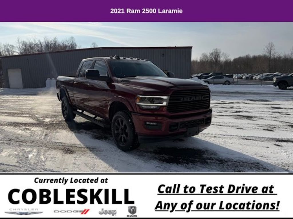 Save Time at the Dealership by Customizing your Deal Online!, 1-Year SiriusXM Guardian Trial, 10 Speakers, 115V Auxiliary Rear Power Outlet, 12" Touchscreen Display, 2 Way Rear Headrest Seat, 220 Amp Alternator, 2nd Row In Floor Storage Bins, 3.73 Axle Ratio, 4 Way Front Headrests, 4-Wheel Disc Brakes, 4G LTE Wi-Fi Hot Spot, 5-Year SiriusXM Traffic Service, 5-Year SiriusXM Travel Link Service, 8.4" Touchscreen Display, ABS brakes, Active Noise Control System, Adjustable pedals, Air Conditioning, Alloy wheels, AM/FM radio: SiriusXM, Anti-Spin Differential Rear Axle, Apple CarPlay, Apple CarPlay/Android Auto, Auto High Beam Headlamp Control, Auto-dimming Rear-View mirror, Automatic temperature control, Black Exterior Mirrors, Black Exterior Truck Badging, Black Headlamp Bezels, Black Interior Accents, Black Ram Head Tailgate Badge, Black Tail Lamp Bezels, Black Wheel Center Hub, Body Color Door Handles, Body Color Grille Surround, Brake assist, Bumpers: chrome, Clearance Lamps, Compass, Dash Pass Thru Wire Circuits, Delay-off headlights, Disassociated Touchscreen Display, Driver door bin, Driver vanity mirror, Dual front impact airbags, Dual front side impact airbags, Electronic Stability Control, Electronically Controlled Throttle, Exterior Mirrors w/Memory, Foam Bottle Insert (Door Trim Panel), For Details Visit DriveUconnect.com, Front anti-roll bar, Front Center Armrest w/Storage, Front dual zone A/C, Front fog lights, Front License Plate Bracket, Front Performance Tuned Shock Absorbers, Front reading lights, Front Seat Back Map Pockets, Fully automatic headlights, Garage door transmitter, Gloss Black Grille Billets/Accents, Google Android Auto, GPS Antenna Input, GPS Navigation, HD Radio, Heated door mirrors, Heated Front Seats, Heated front seats, Heated Steering Wheel, Heated steering wheel, Hill Descent Control, I/P Mounted Auxiliary Switches, Illuminated entry, Integrated Center Stack Radio, Integrated Voice Command w/Bluetooth, Laramie Level A Equipment Group, Leather steering wheel, Leather Trim 40/20/40 Bench Seat, LED Bed Lighting, Low tire pressure warning, Mirror-Mounted Aux Reverse Lamps, Night Edition, Occupant sensing airbag, Off Road Decal, Off Road Package, Off-Road Information Pages, Outside temperature display, Overhead airbag, Overhead console, Painted Front Bumper, Painted Rear Bumper, Panic alarm, ParkView Rear Back-Up Camera, Passenger door bin, Passenger vanity mirror, Power 2-Way Driver Lumbar Adjust, Power 2-Way Passenger Lumbar Adjust, Power Adjust 8-Way Driver Seat, Power Adjust 8-Way Front Passenger Seat, Power Adjustable Convex Aux Mirrors, Power Adjustable Pedals w/Memory, Power Black Tow Mirrors w/Convex Spotter & Memory, Power Chrome Tow Mirrors w/Convex Spotter & Memory, Power door mirrors, Power driver seat, Power passenger seat, Power steering, Power windows, Quick Order Package 2GH Laramie, Radio data system, Radio: Uconnect 12.0 w/Navigation, Radio: Uconnect 4 w/8.4" Display, Radio/Driver Seat/Mirrors/Pedals Memory, Rain Sensitive Windshield Wipers, Rear 60/40 Folding Seat, Rear anti-roll bar, Rear Performance Tuned Shock Absorbers, Rear reading lights, Rear seat center armrest, Rear step bumper, Rear window defroster, Remote keyless entry, Remote Tailgate Release, Security system, SiriusXM Satellite Radio, SiriusXM Traffic Plus, SiriusXM Travel Link, SiriusXM w/360L, Snow Chief Group, Speed control, Split folding rear seat, Steering wheel mounted audio controls, Tachometer, Tilt steering wheel, Tip Start, Tow Hooks, Traction control, Trip computer, Turn signal indicator mirrors, Variably intermittent wipers, Vendor Painted Cargo Box Tracking, Ventilated Front Seats, Voltmeter, Wheels: 18" x 8.0" Polished Aluminum, Wheels: 20" x 8.0" Black Painted Aluminum. 2021 Ram 2500 4D Crew Cab Laramie 4WD 8-Speed Automatic 6.4L V8 Delmonico Red Pearlcoat