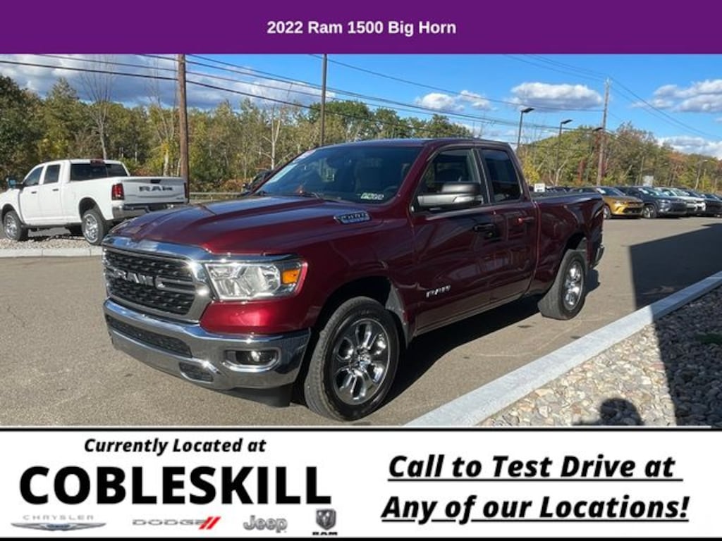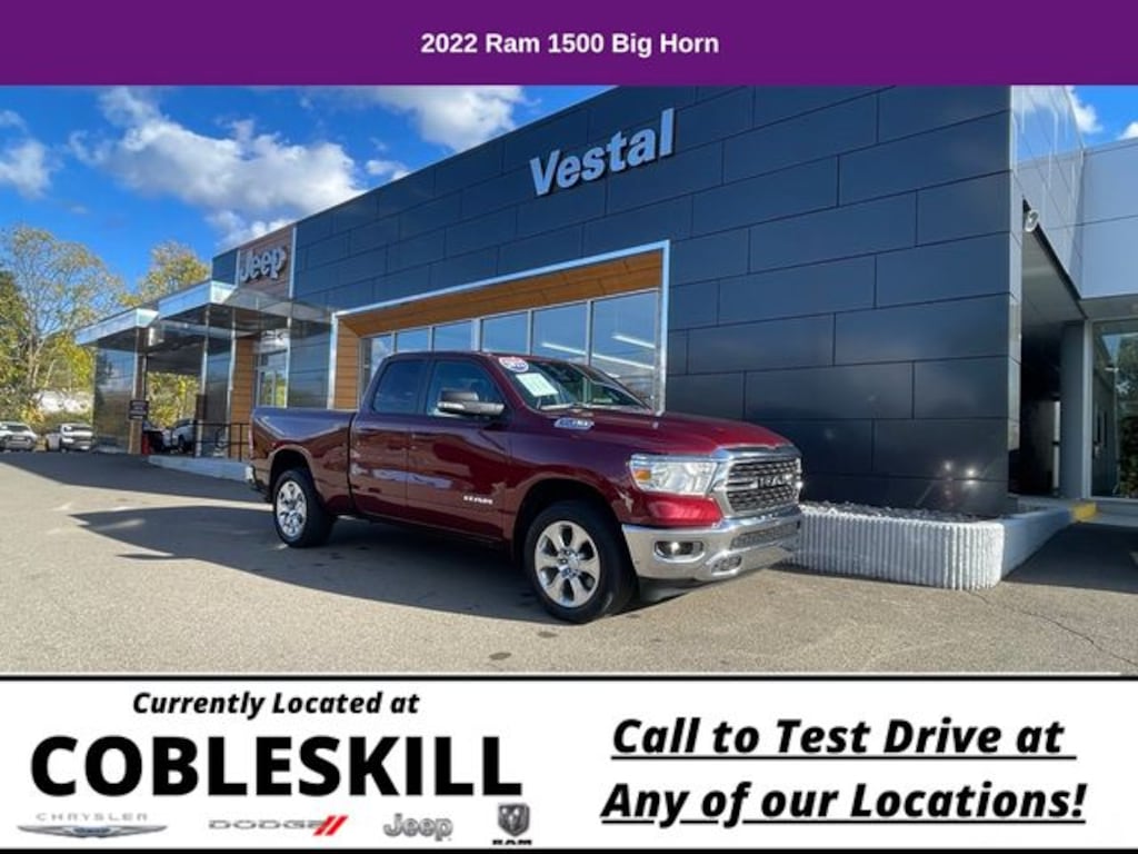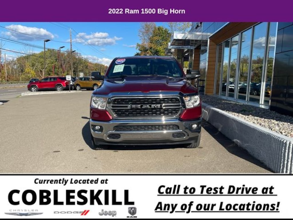 Save Time at the Dealership by Customizing your Deal Online!, 3 Rear Seat Head Restraints, 4 Way Front Headrests, 4-Wheel Disc Brakes, 48V Belt Starter Generator, 4G LTE Wi-Fi Hot Spot, 6 Speakers, 8.4" Touchscreen Display, ABS brakes, Air Conditioning, Air Conditioning ATC w/Dual Zone Control, All R1 High Radios, All Radio Equipped Vehicles, Alloy wheels, AM/FM radio, Apple CarPlay, Auto-Dimming Exterior Driver Mirror, Auto-Dimming Rear-View Mirror, Big Horn Badge, Big Horn Level 1 Equipment Group, Black Exterior Mirrors, Black Premium Power Mirrors, Bluetooth Handsfree Phone & Audio, Brake assist, Bumpers: chrome, Class IV Receiver Hitch, Cloth Bench Seat, Cluster 7.0" TFT Color Display, Compass, Connected Travel & Traffic Services, Connectivity - US/Canada, Convex Wide-Angle Mirror Insert, Delay-off headlights, Disassociated Touchscreen Display, Driver door bin, Dual front impact airbags, Dual front side impact airbags, Electronic Stability Control, Emergency communication system: SiriusXM Guardian, Exterior Mirrors Courtesy Lamps, Exterior Mirrors w/Heating Element, Exterior Mirrors w/Supplemental Signals, For Details, Visit DriveUconnect.com, For More Info, Call 800-643-2112, Front anti-roll bar, Front Center Armrest w/Storage, Front fog lights, Front License Plate Bracket, Front reading lights, Front Seat Back Map Pockets, Front wheel independent suspension, Fully automatic headlights, Global Telematics Box Module (TBM), Glove Box Lamp, Google Android Auto, GPS Antenna Input, GPS Navigation, HD Radio, Heated door mirrors, Illuminated entry, Integrated Center Stack Radio, Integrated Voice Command w/Bluetooth, Leather steering wheel, Low tire pressure warning, Manual Adjust 4-Way Front Passenger Seat, Occupant sensing airbag, Outside temperature display, Overhead airbag, Overhead console, Panic alarm, ParkView Rear Back-Up Camera, Passenger door bin, Passenger vanity mirror, Power 2-Way Driver Lumbar Adjust, Power 8-Way Driver Seat, Power Adjustable Pedals, Power door mirrors, Power steering, Power windows, Power-Folding Mirrors, Quick Order Package 23Z Big Horn, Radio data system, Radio: Uconnect 3 w/5" Display, Radio: Uconnect 5 Nav w/8.4" Display, Radio: Uconnect 5 W w/8.4" Display, Rear 60/40 Folding Seat, Rear anti-roll bar, Rear Dome w/On/Off Switch Lamp, Rear Power Sliding Window, Rear seat center armrest, Rear step bumper, Rear Window Defroster, Remote keyless entry, Remote Start System, SiriusXM Radio Service, SiriusXM Satellite Radio, SiriusXM w/360L, Speed control, Split folding rear seat, Steering wheel mounted audio controls, Sun Visors w/Illuminated Vanity Mirrors, Tachometer, Telescoping steering wheel, Tilt steering wheel, Traction control, Trip computer, Universal Garage Door Opener, USB Host Flip, Variably intermittent wipers, Voltmeter, Wheels: 18" x 8" Cast-Aluminum Painted, Wheels: 20" x 9" Aluminum Chrome Clad. 2022 Ram 1500 4D Quad Cab Big Horn/Lone Star 4WD 8-Speed Automatic 3.6L V6 24V VVT Delmonico Red Pearlcoat
