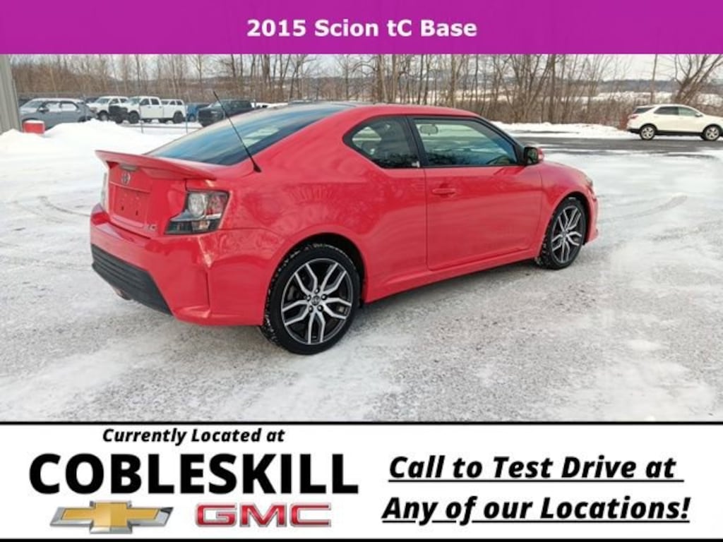 Save Time at the Dealership by Customizing your Deal Online!, Moon Roof, Upgraded Audio, Apple CarPlay/Android Auto, Bluetooth, Backup Camera, 4-Wheel Disc Brakes, ABS brakes, Air Conditioning, Alloy wheels, Anti-whiplash front head restraints, Brake assist, Dual front impact airbags, Dual front side impact airbags, Electronic Stability Control, Front anti-roll bar, Front Bucket Seats, Knee airbag, Low tire pressure warning, Occupant sensing airbag, Outside temperature display, Overhead airbag, Panic alarm, Power door mirrors, Power moonroof, Power steering, Power windows, Premium audio system: Pioneer, Radio: AM/FM/CD Pioneer, Rear anti-roll bar, Rear window defroster, Remote Engine Starter, Remote keyless entry, Speed control, Steering wheel mounted audio controls, Tachometer, Telescoping steering wheel, Tilt steering wheel, Traction control, Turn signal indicator mirrors, Variably intermittent wipers, 8 Speakers, AM/FM radio, Bumpers: body-color, CD player, Driver door bin, Driver vanity mirror, Fabric Upholstery, Four wheel independent suspension, Front Center Armrest, Front reading lights, Front Sport Bucket Seats, Illuminated entry, Passenger door bin, Passenger vanity mirror, Radio data system, Split folding rear seat, Newer Tires!, 4-Wheel Disc Brakes, ABS brakes, Air Conditioning, Alloy wheels, Anti-whiplash front head restraints, Brake assist, Dual front impact airbags, Dual front side impact airbags, Electronic Stability Control, Front anti-roll bar, Front Bucket Seats, Knee airbag, Low tire pressure warning, Occupant sensing airbag, Outside temperature display, Overhead airbag, Panic alarm, Power door mirrors, Power moonroof, Power steering, Power windows, Premium audio system: Pioneer, Radio: AM/FM/CD Pioneer, Rear anti-roll bar, Rear window defroster, Remote Engine Starter, Remote keyless entry, Speed control, Steering wheel mounted audio controls, Tachometer, Telescoping steering wheel, Tilt steering wheel, Traction control, Turn signal indicator mirrors, Variably intermittent wipers. 2015 Scion tC FWD 6-Speed Automatic 2.5L I4 Dual VVT-i Red